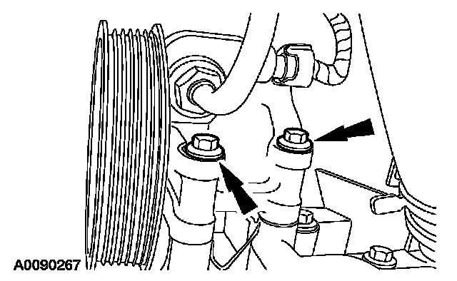 11. Install the remaining 2 power steering pump bolts.