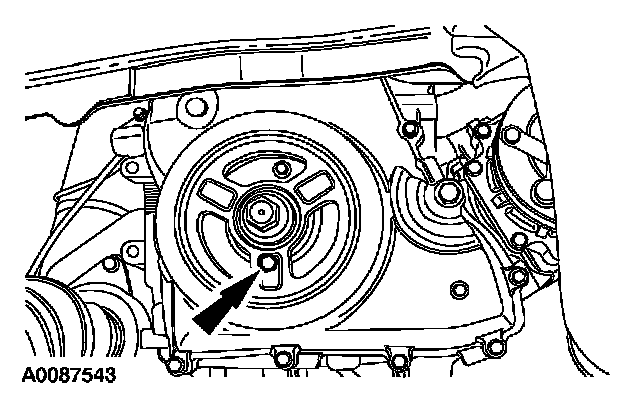 14. CAUTION: Only hand-tighten the bolt or damage to the front cover can occur.
