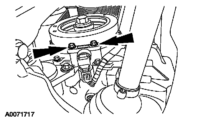 ^ Rotate the pulley as necessary to align the bolt holes.