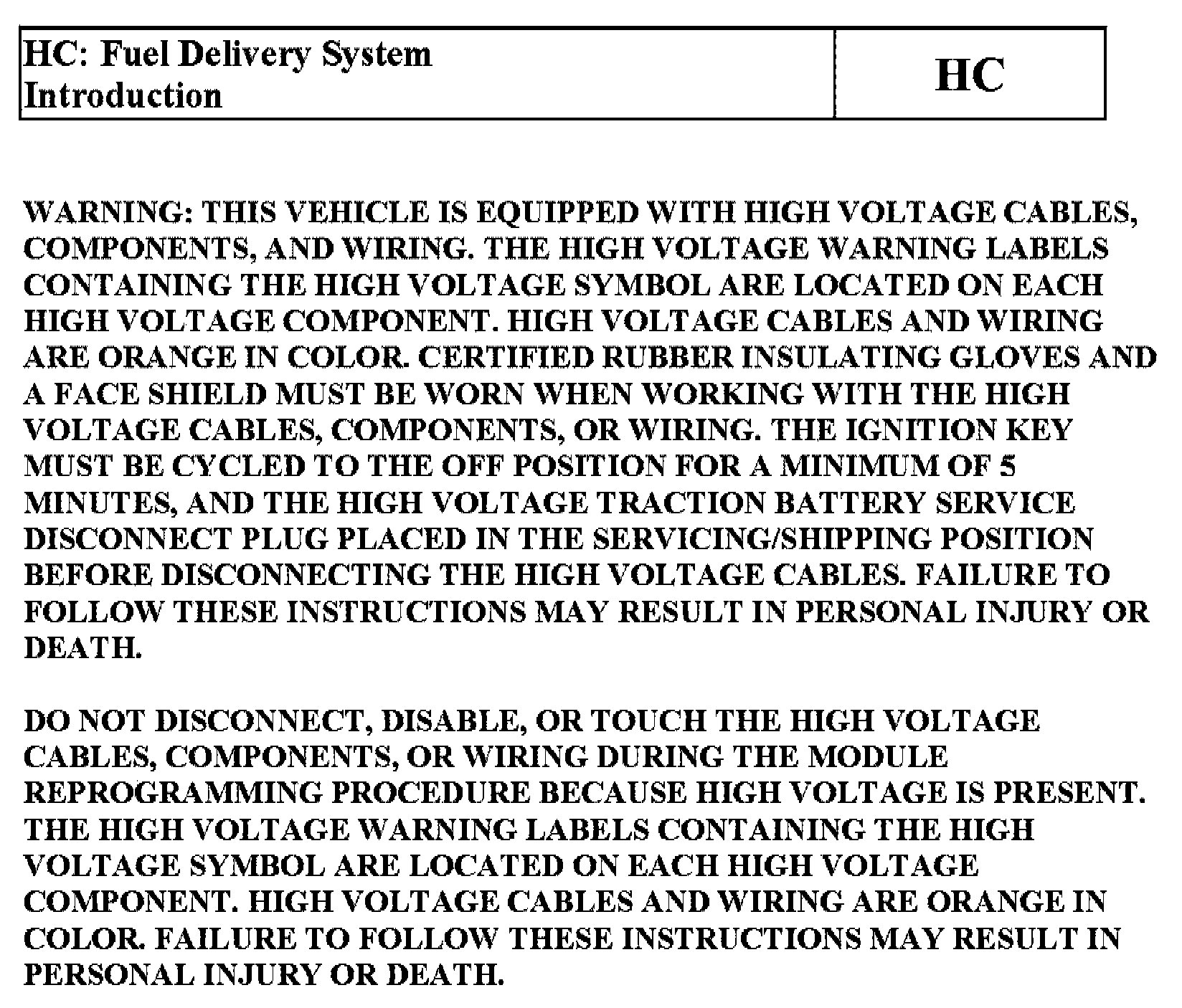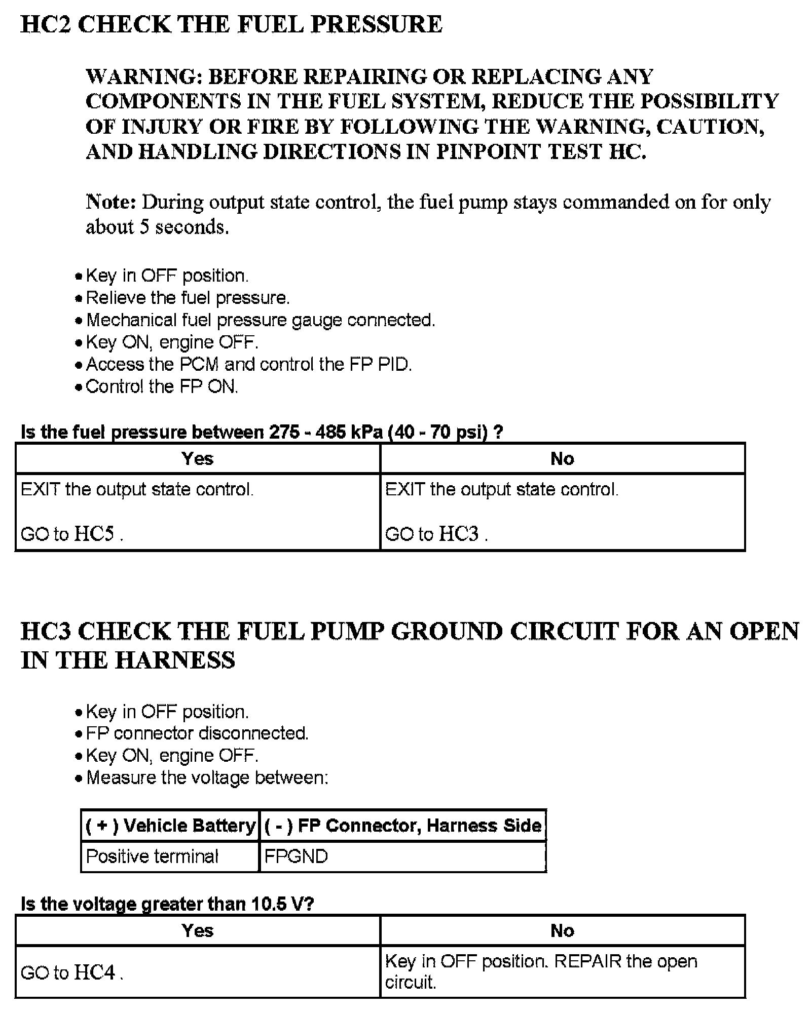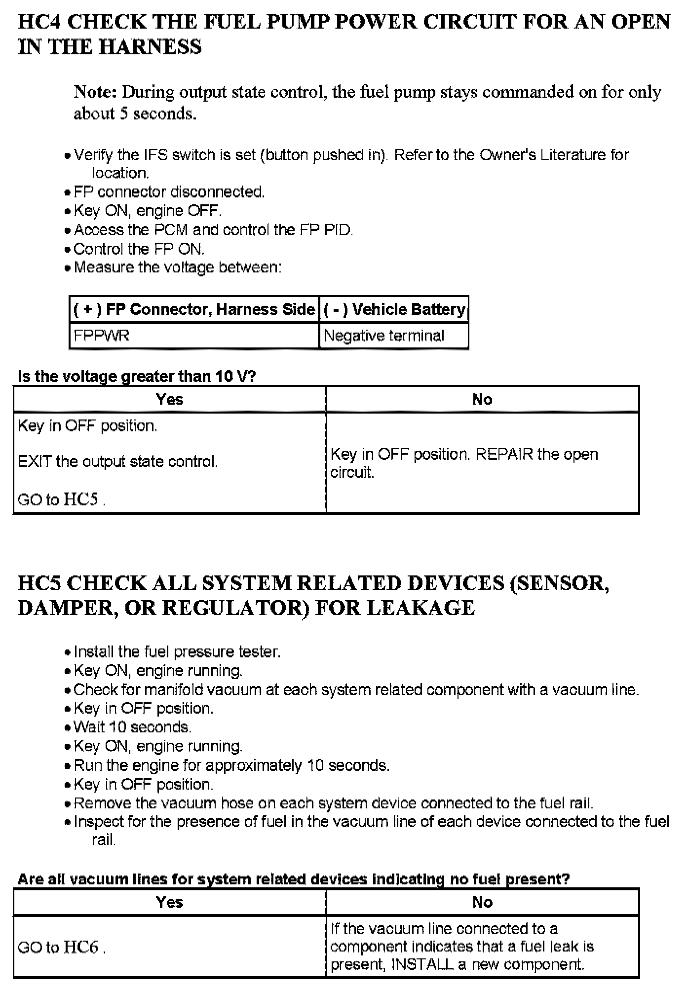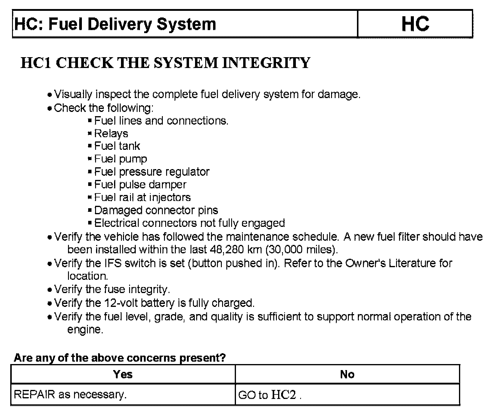 Tests HC: Fuel Delivery System