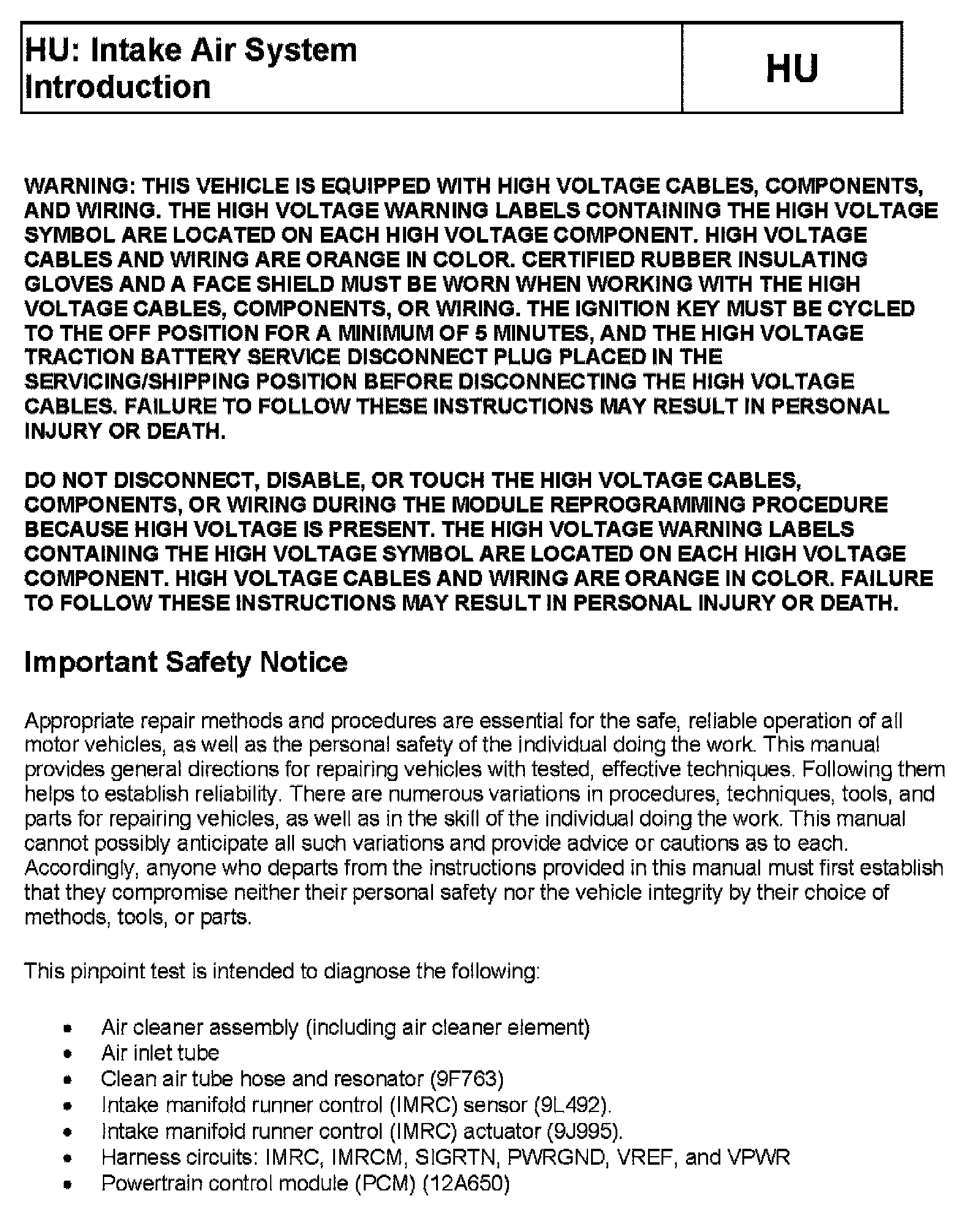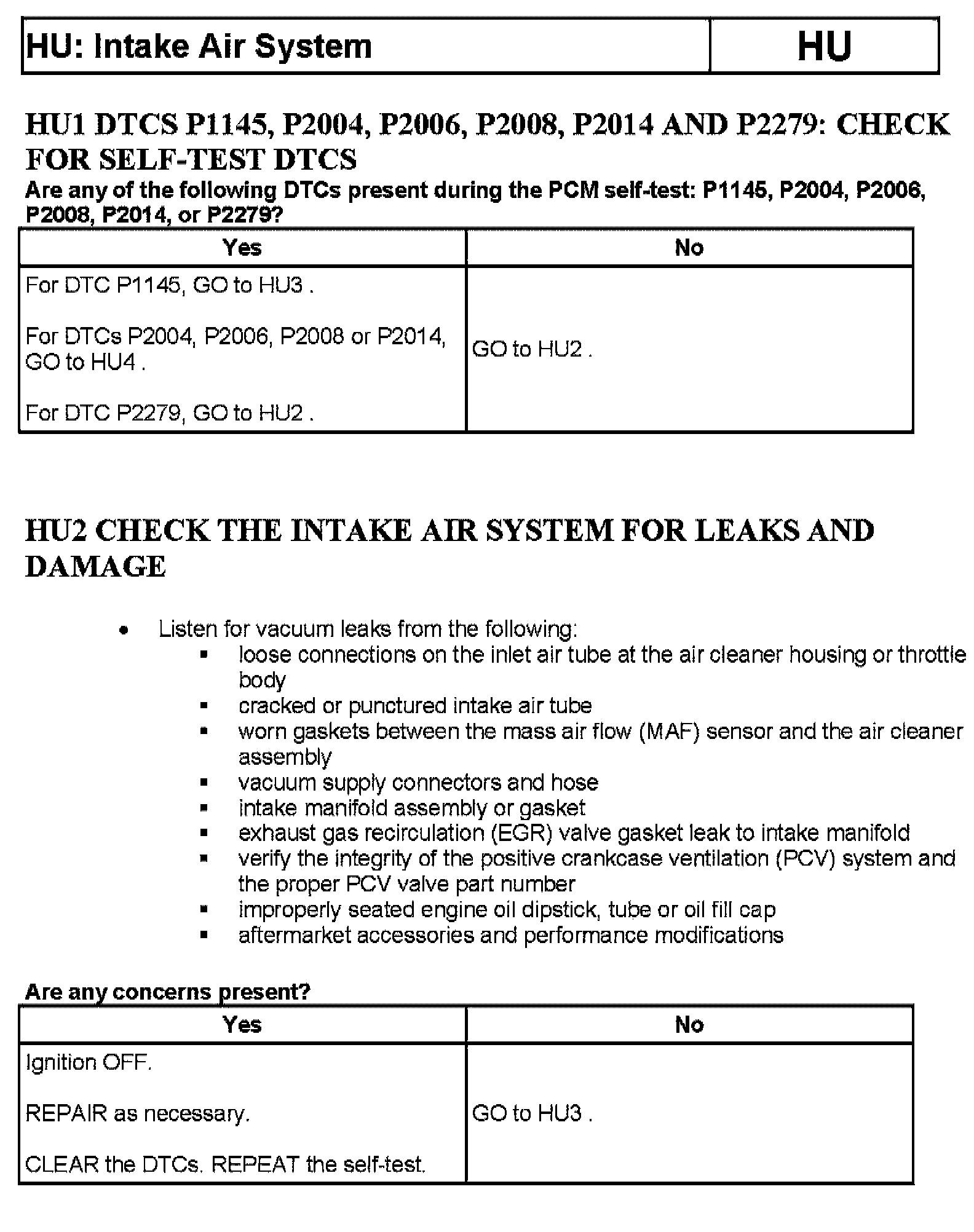 Tests HU: Intake Air System