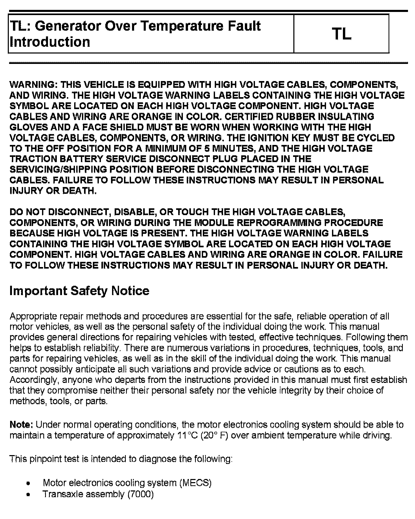 Tests TL: Generator Over Temperature Fault