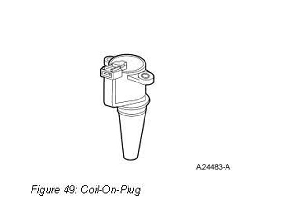 The EI system consists of a crankshaft position (CKP) sensor, coil(s) on plug (COP), and the PCM. The COP integrated EI system uses a separate coil per spark plug, and each coil is mounted directly onto the plug. The COP integrated EI system requires input from the camshaft position (CMP) sensor. Operation of the components are as follows: