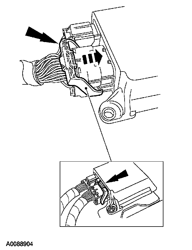 - Using the connector position assurance lever, pivot it toward the RCM, drawing the connector into the RCM.
