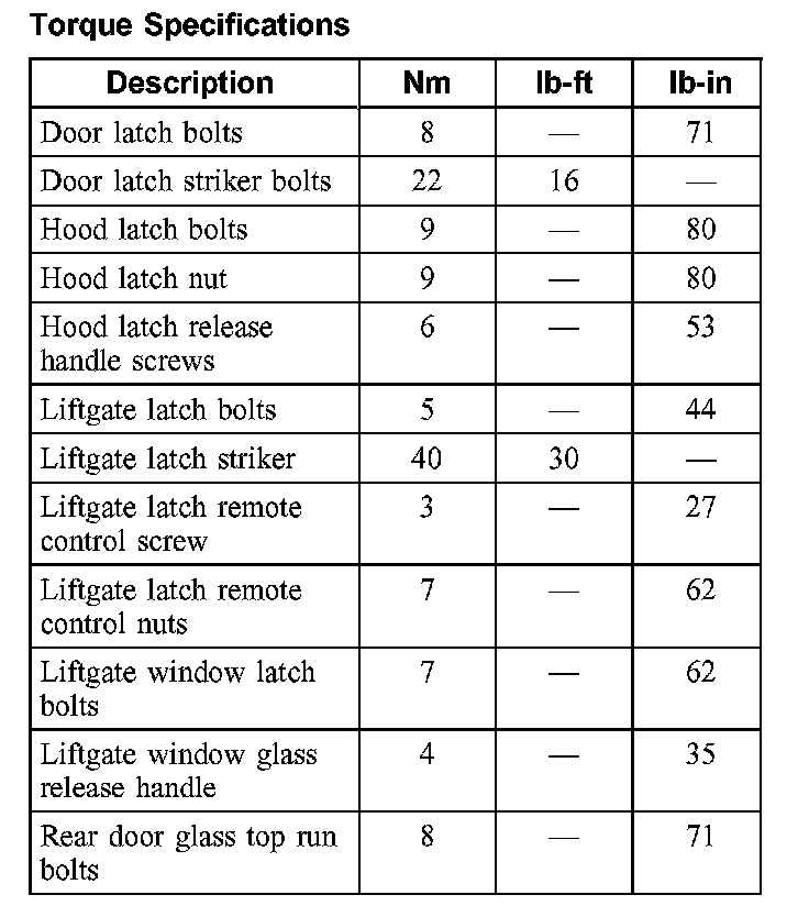 Torque Specifications:
