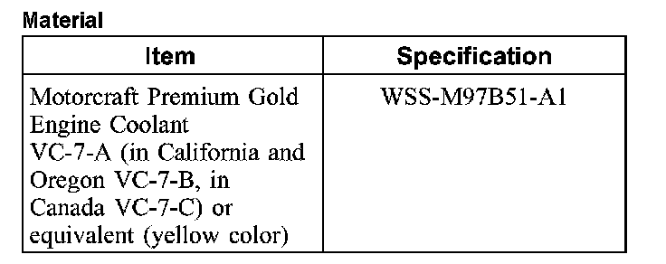 ^ Vehicle cooling systems are filled with Motorcraft Premium Gold Engine Coolant. Always fill the cooling system with the same coolant that is present in the system. Do not mix coolant types.
