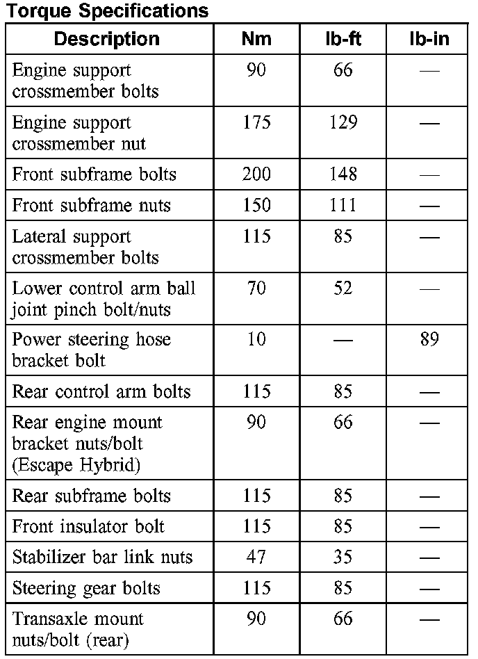 Torque Specifications: