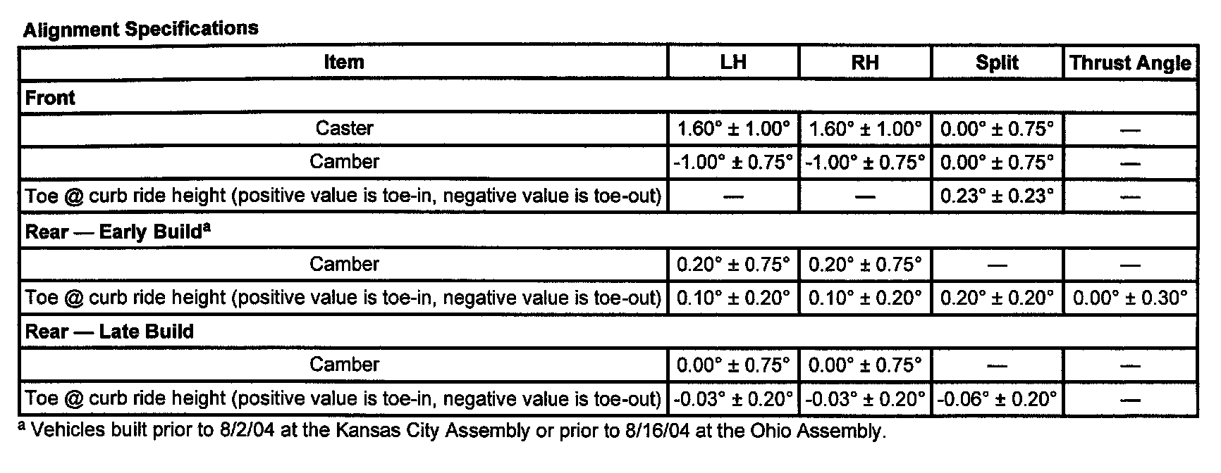 Alignment Specifications