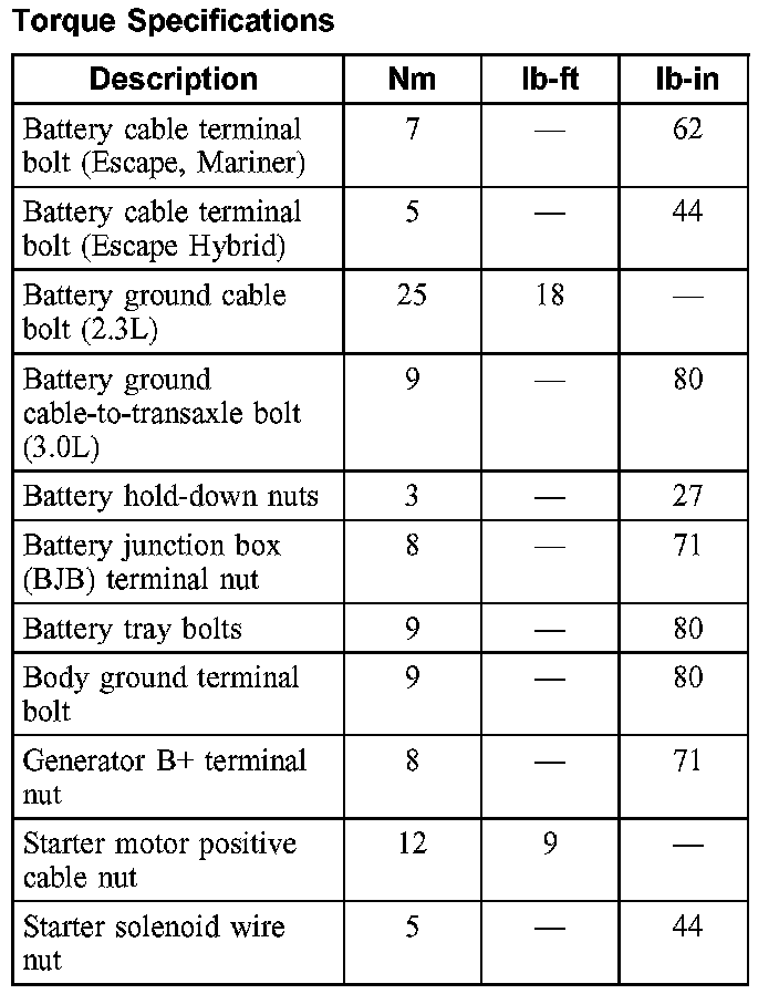 Torque Specifications: