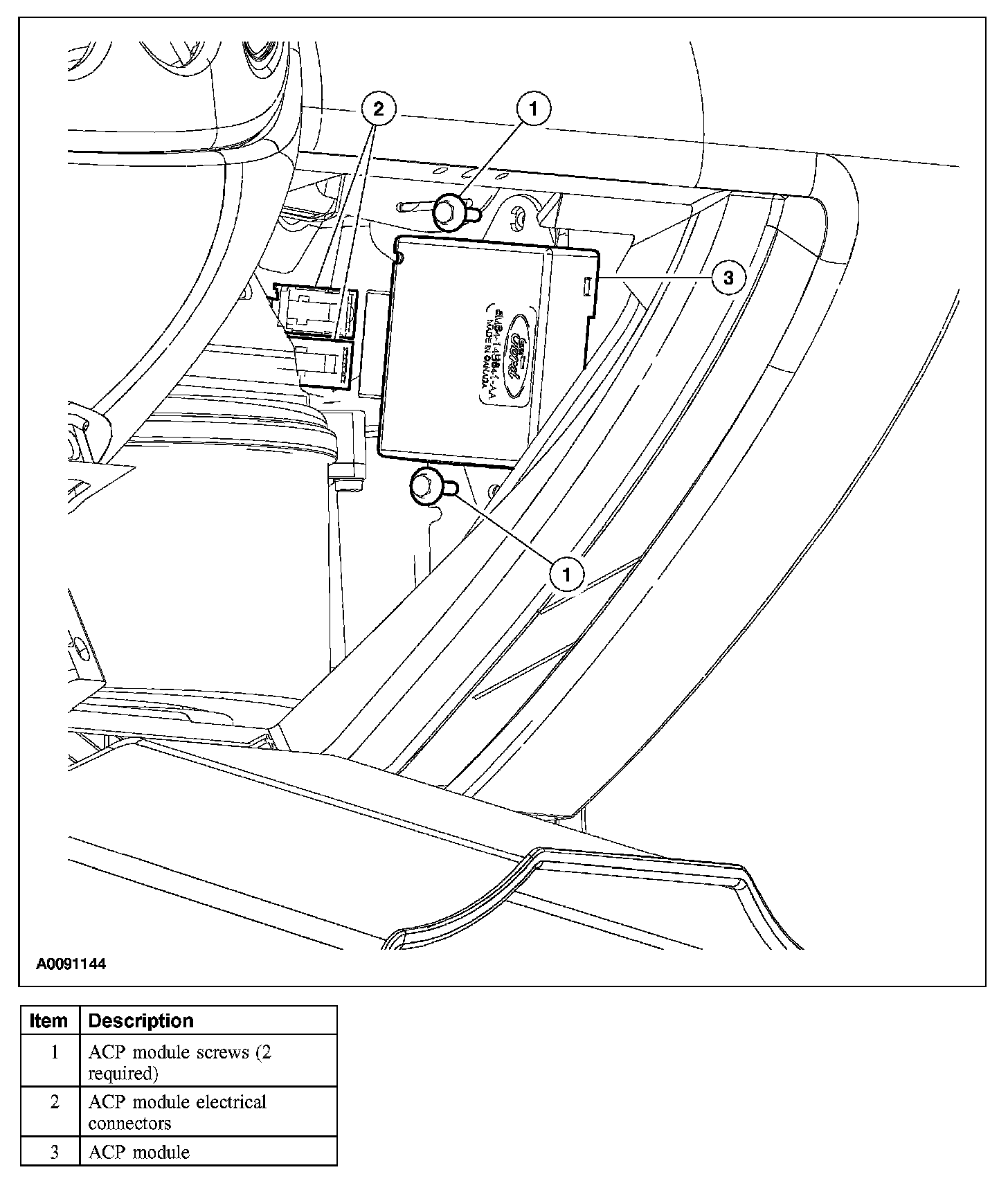 4. Disconnect the electrical connectors and remove the ACP module.