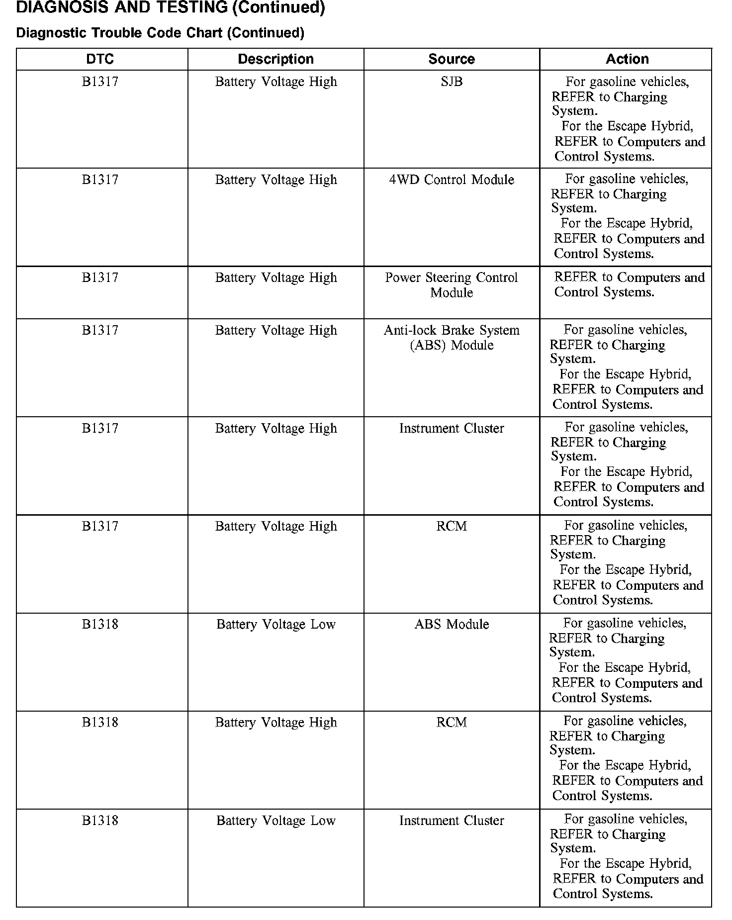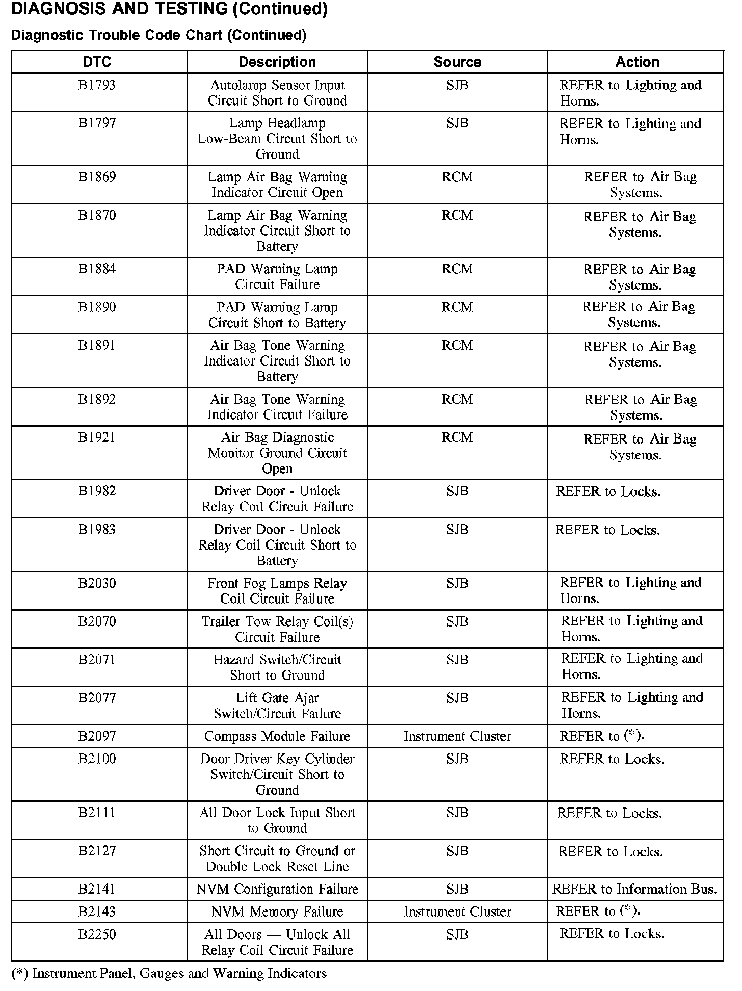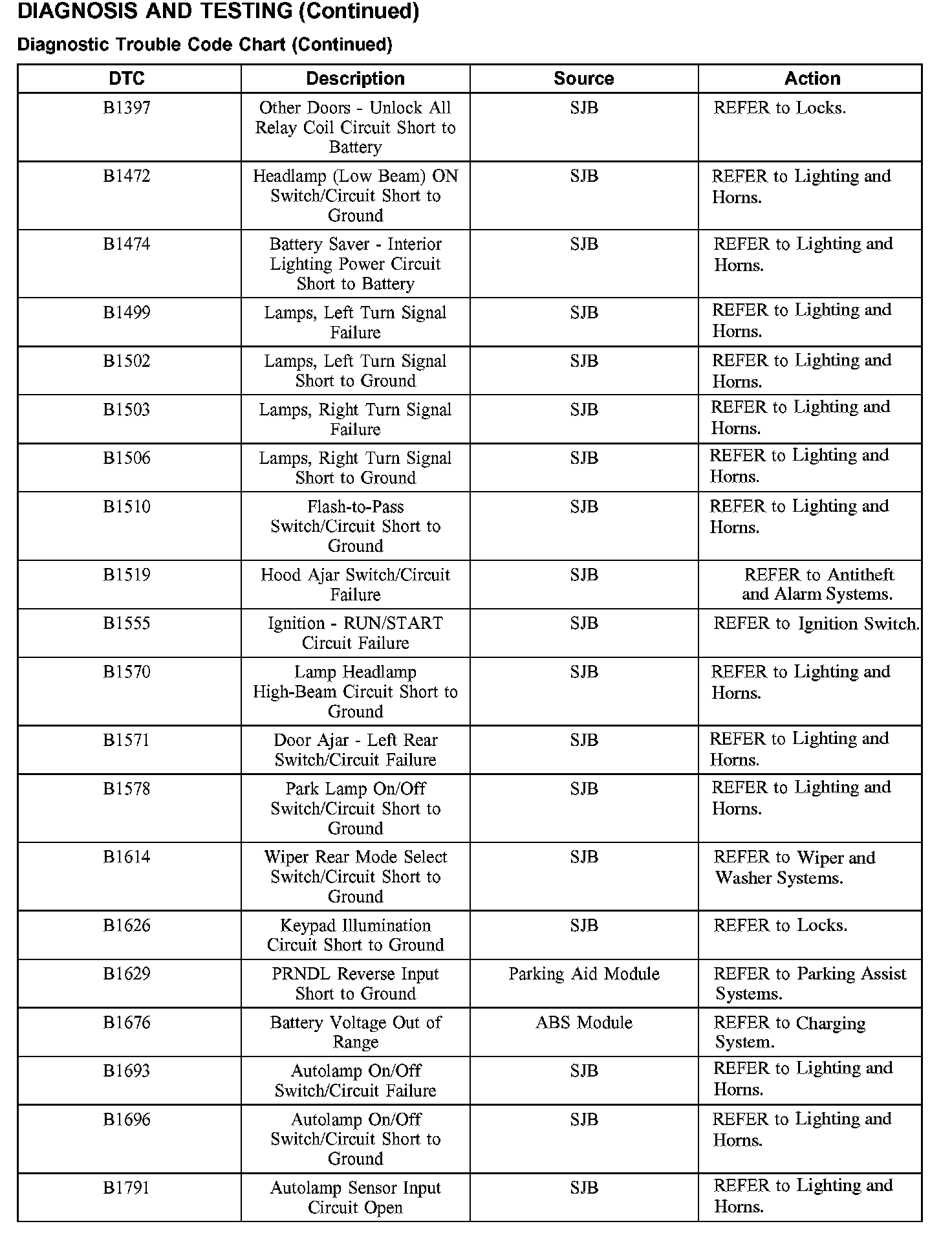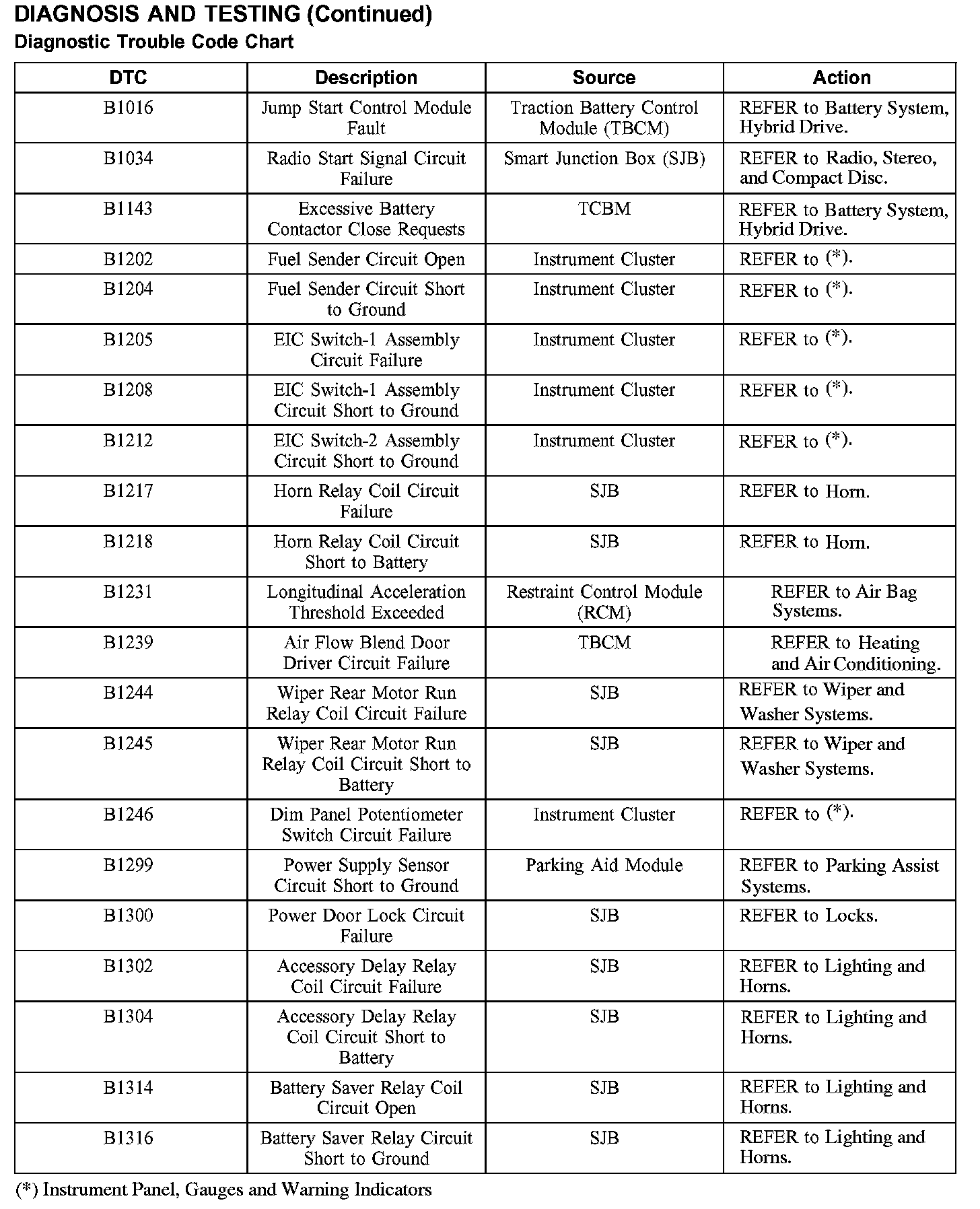 DIAGNOSTIC TROUBLE CODE CHARTB1016-B1316: