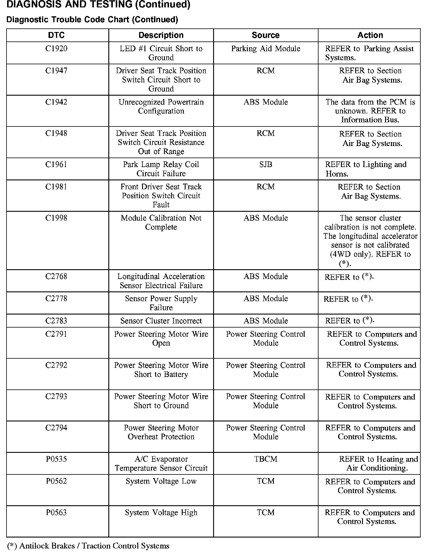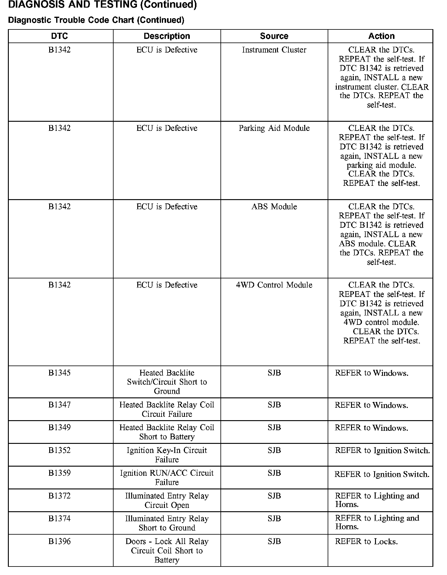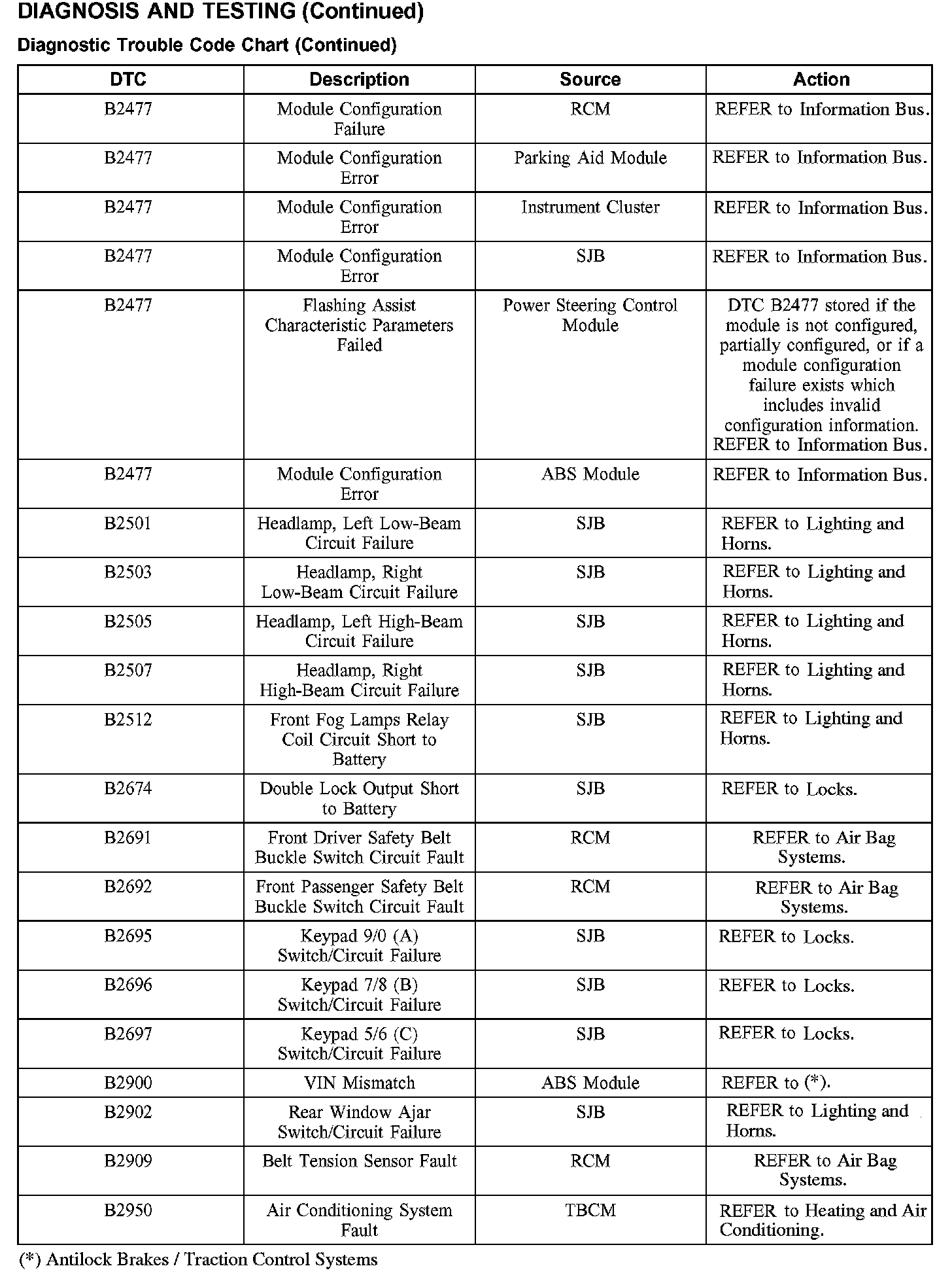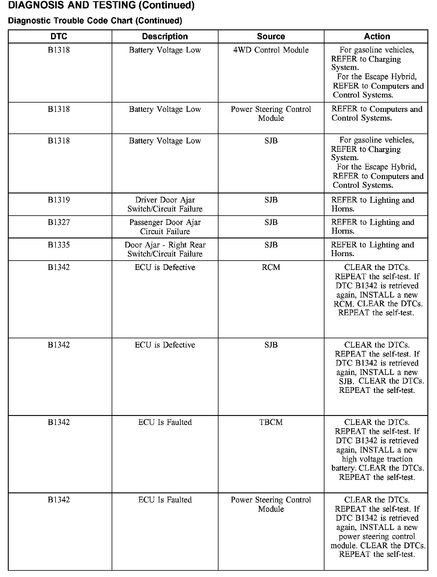 DIAGNOSTIC TROUBLE CODE CHARTB1016-B1316:
