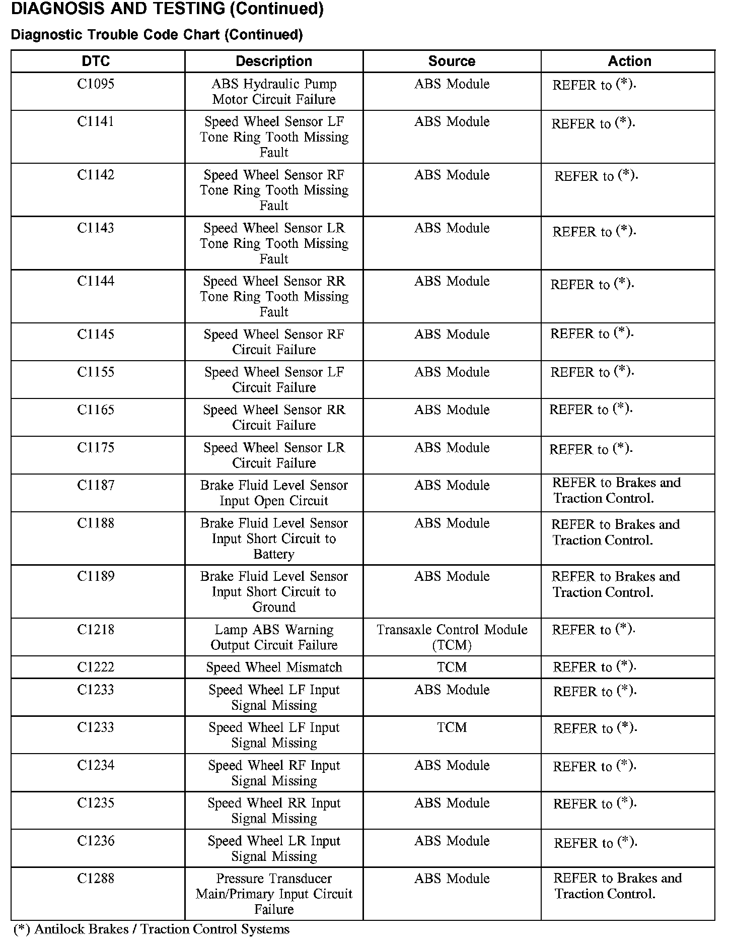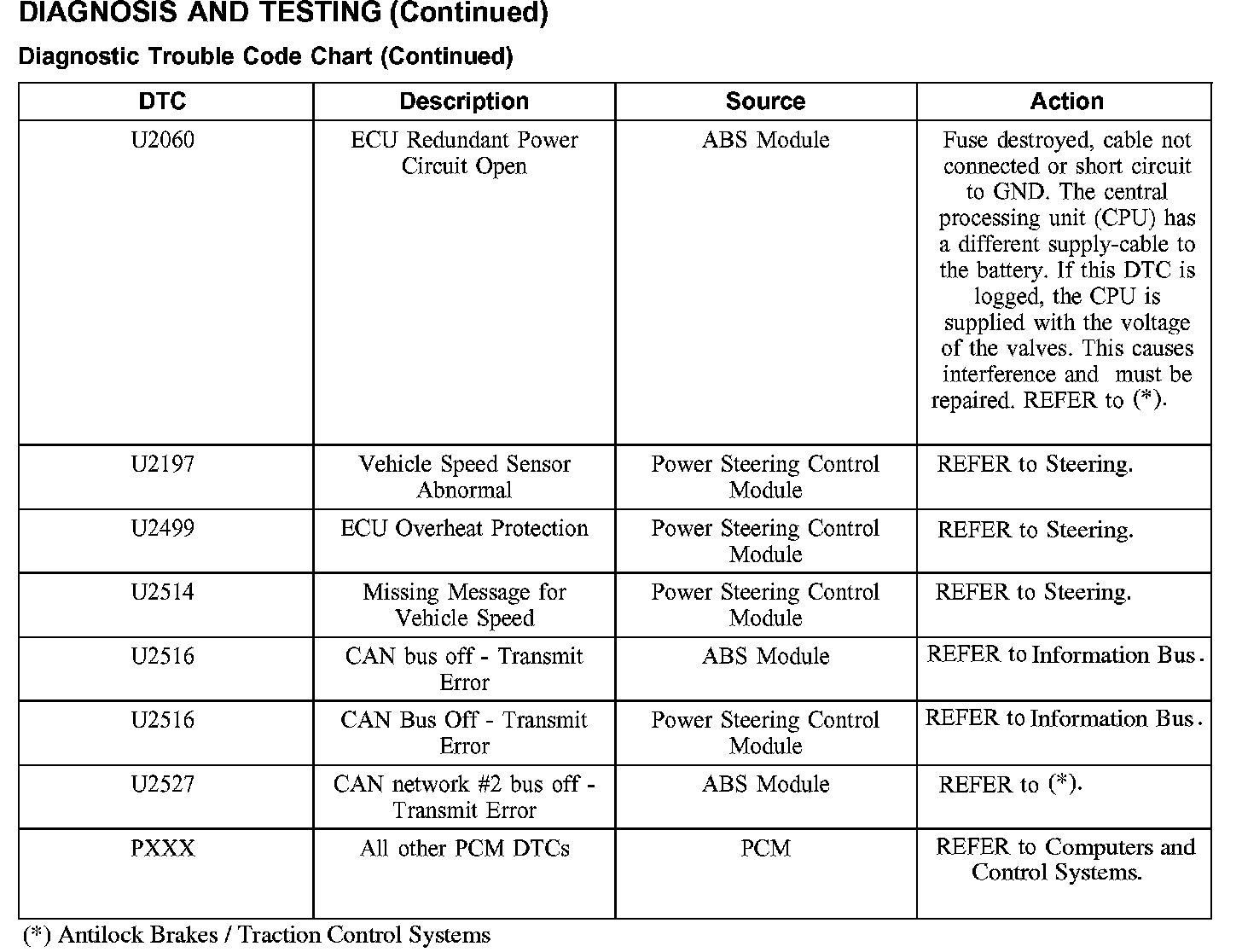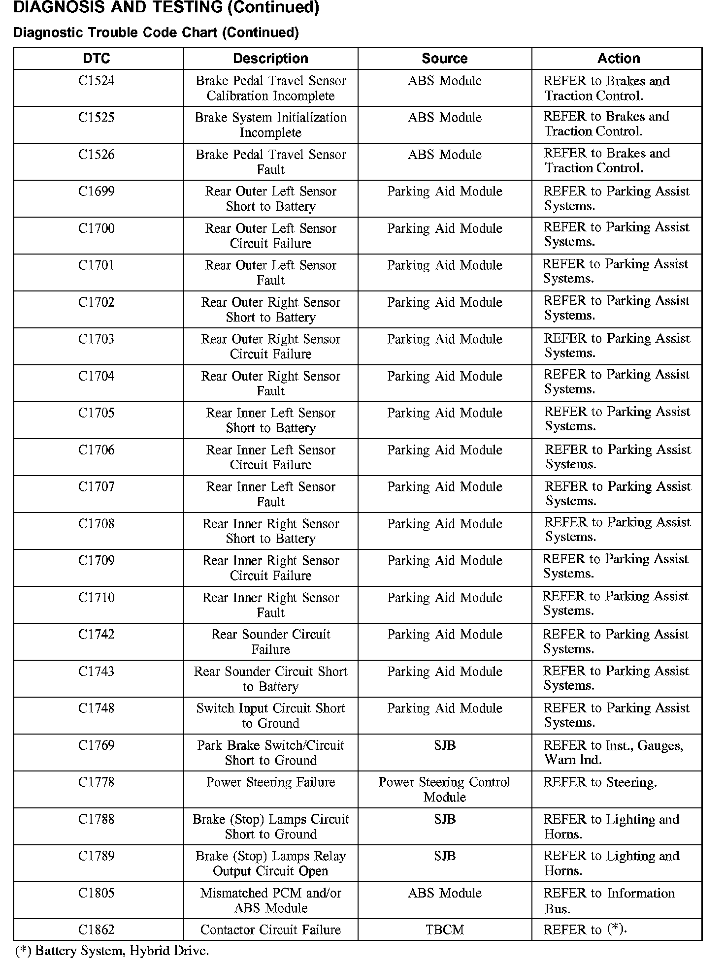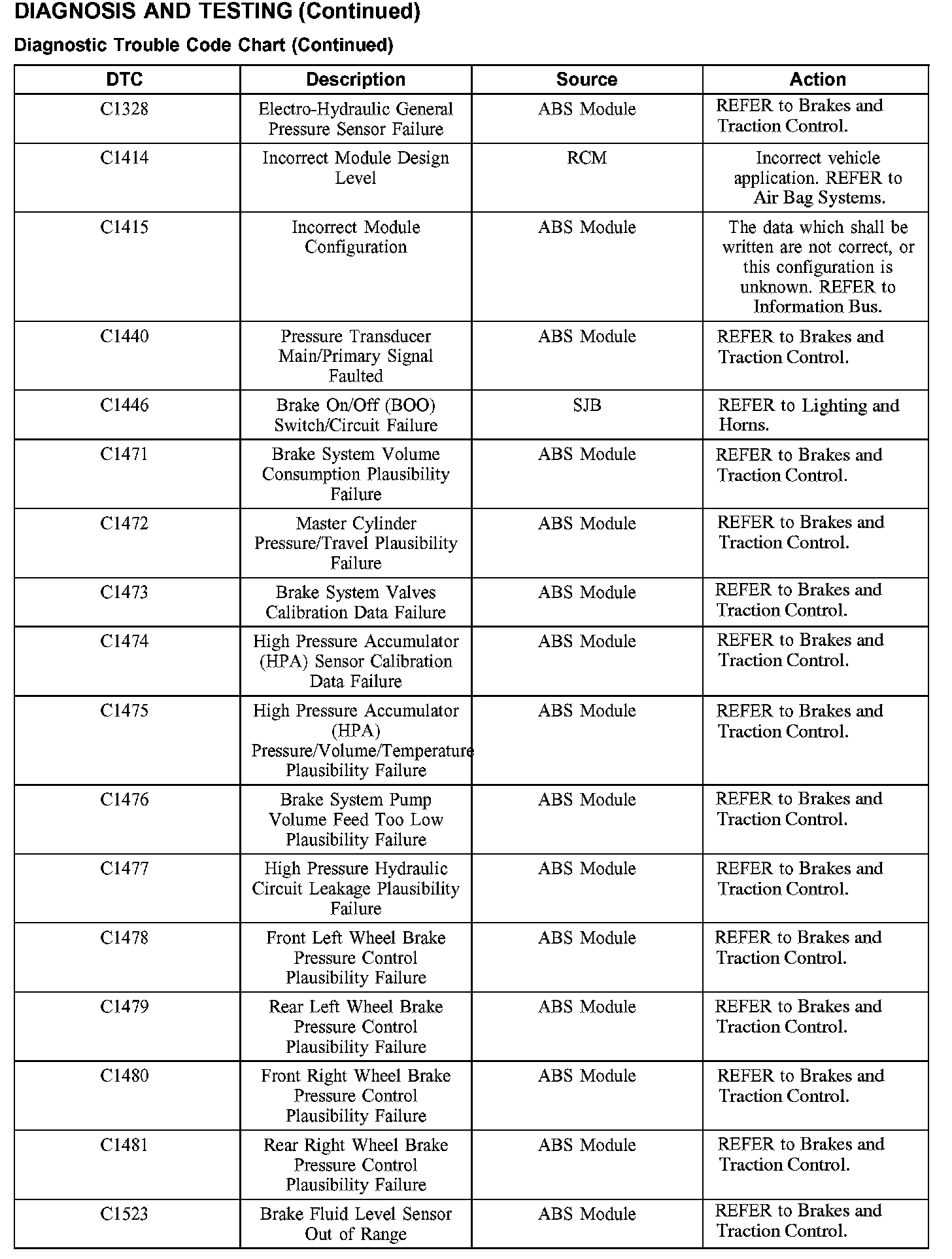 DIAGNOSTIC TROUBLE CODE CHARTB1016-B1316: