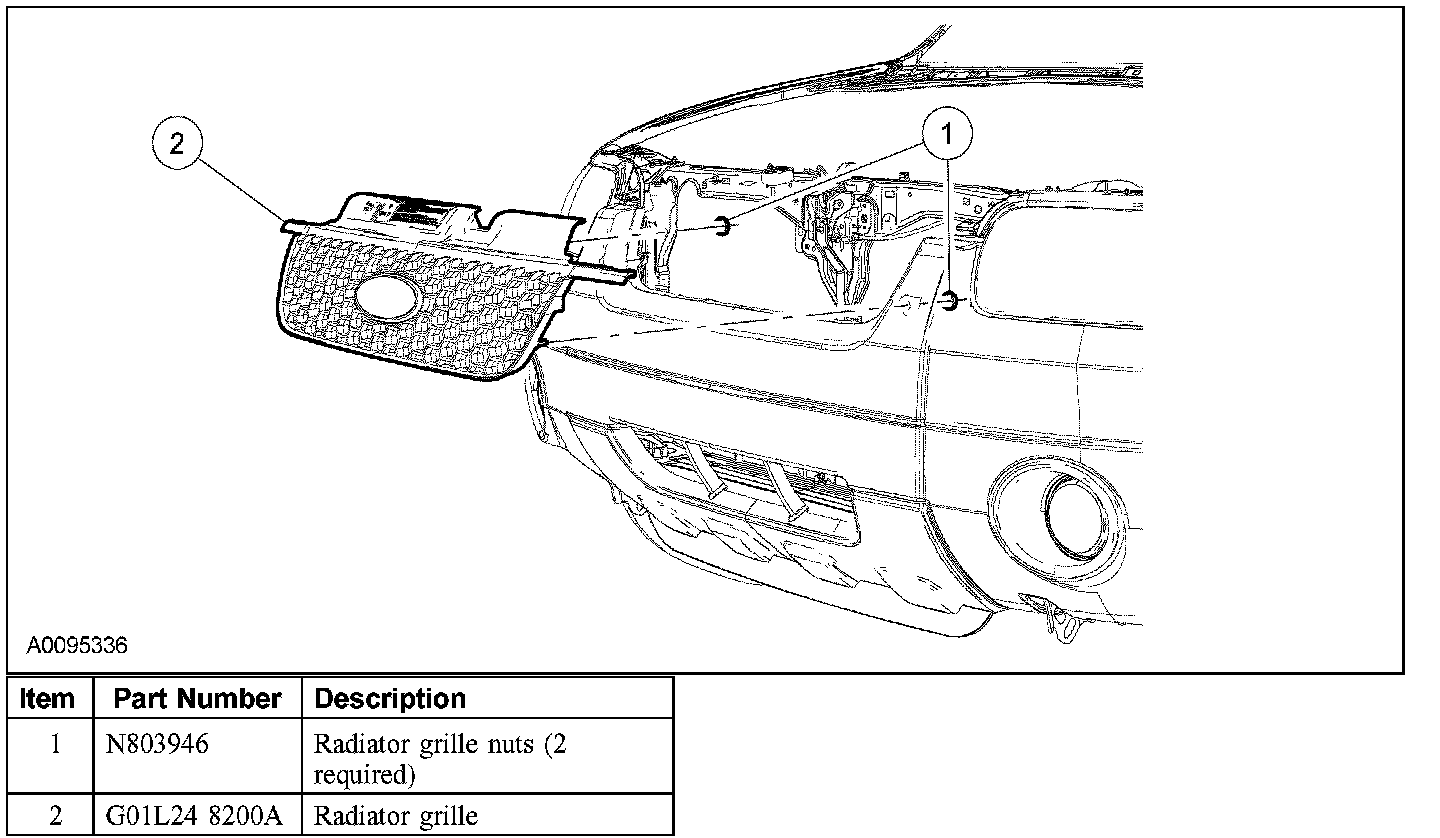 Remove the 2 radiator grille nuts.