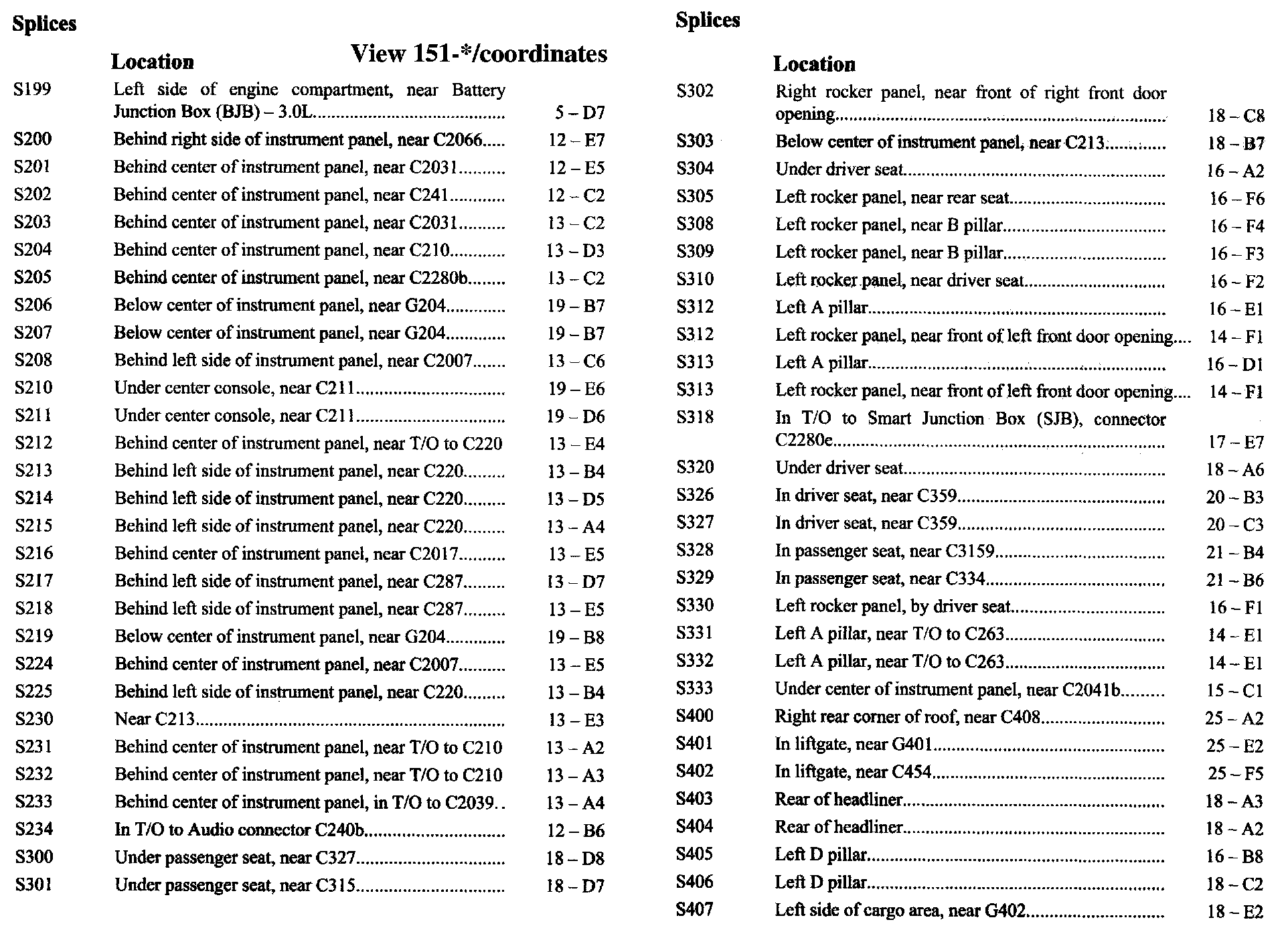 If a link on the Splice Location Index to a View is not provided, that means that the Splice and/or View in question does NOT apply to the vehicle model selected.