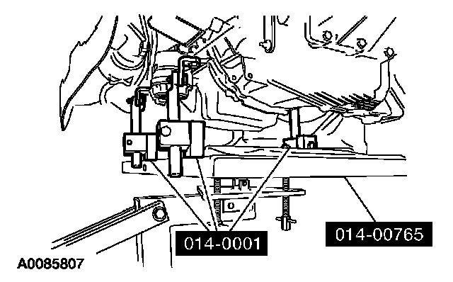 3. Using the special tools, secure the engine to the lift table.