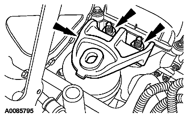 7. Install the engine mount bracket and nuts.