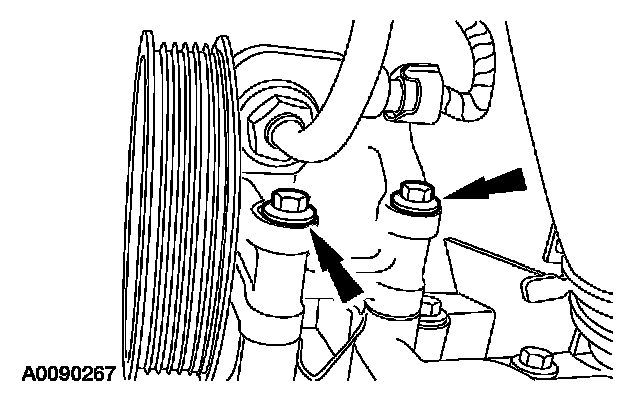 17. Install the 2 power steering pump bolts.