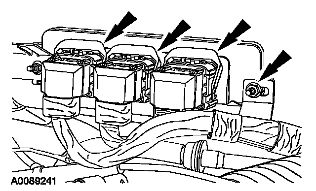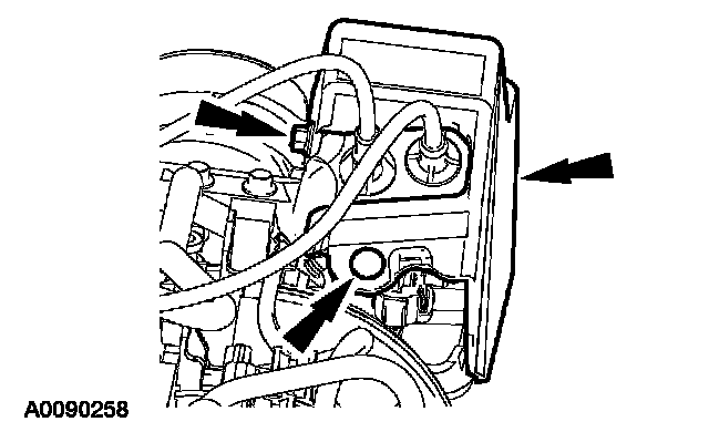 19. Connect the powertrain control module (PCM) electrical connectors. Position the harness and install the nut.