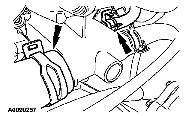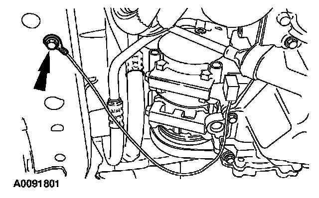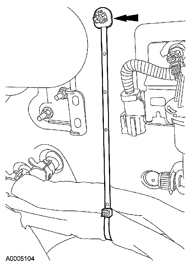 31. Attach the heater hose support strap to the stud.