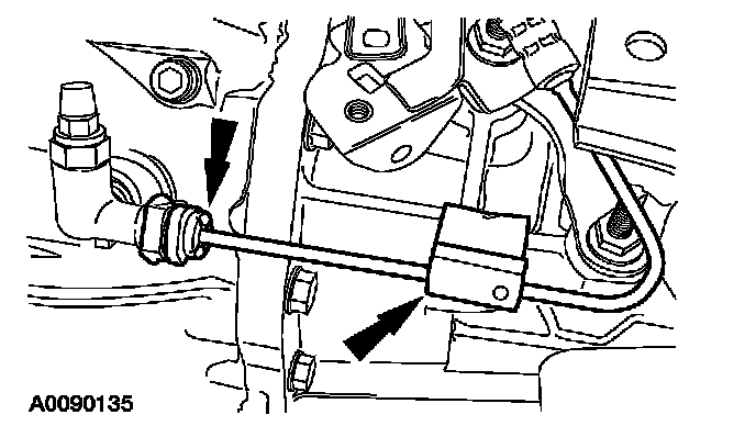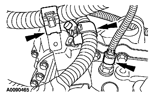 34. If equipped, route the block heater wiring harness and attach all retainers. Connect the block heater electrical connector.