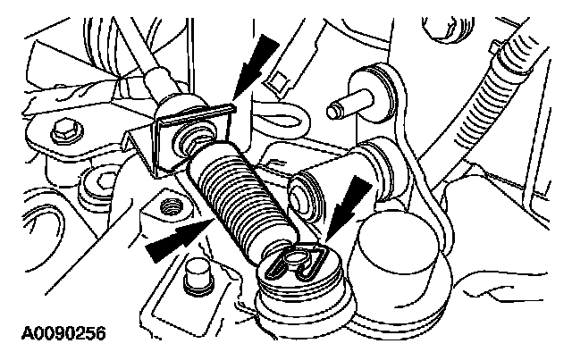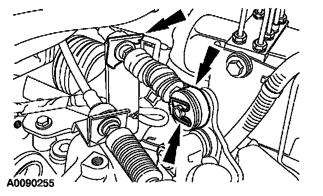 38. Connect the transaxle control cable and install the retaining clips.
