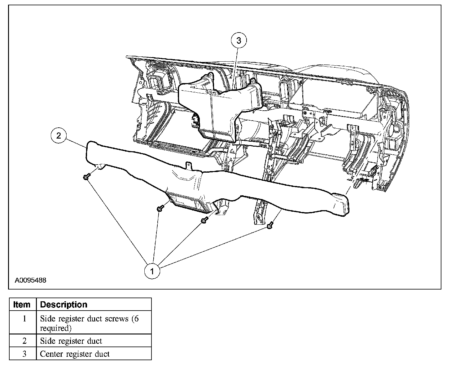 2. Remove the 6 side register duct screws and the register duct assembly.