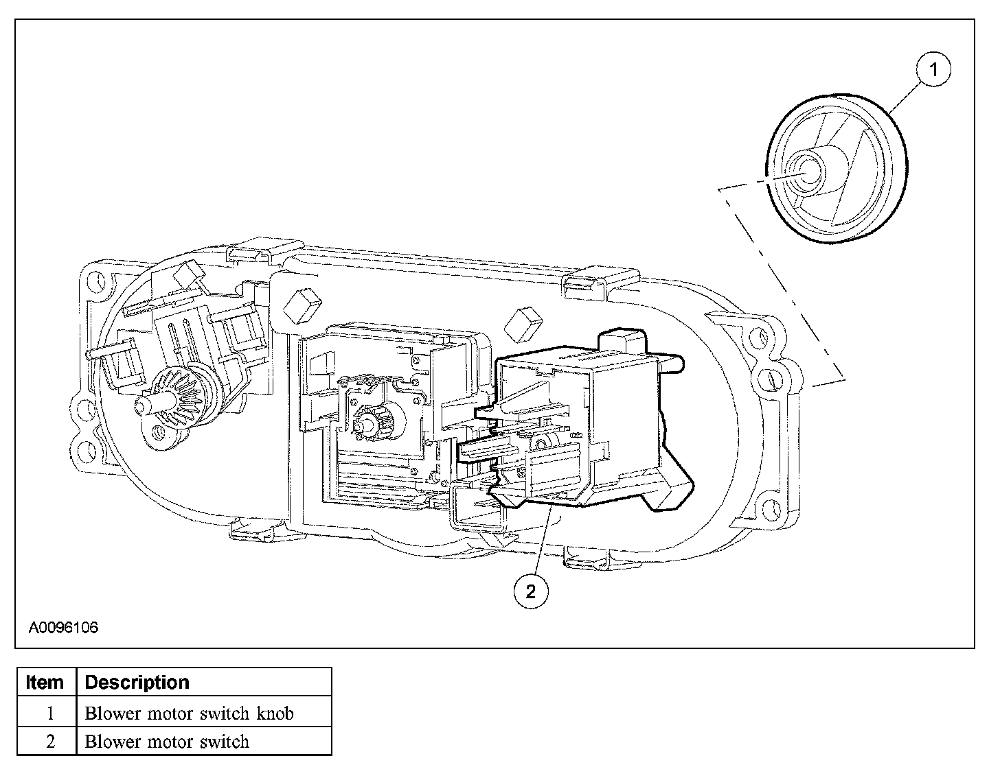 3. Press the tabs simultaneously and remove the blower motor switch.