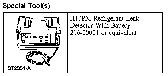 Leak test the refrigerant system using the refrigerant leak detector. Follow the instructions included with the leak detector for handling and operation techniques.