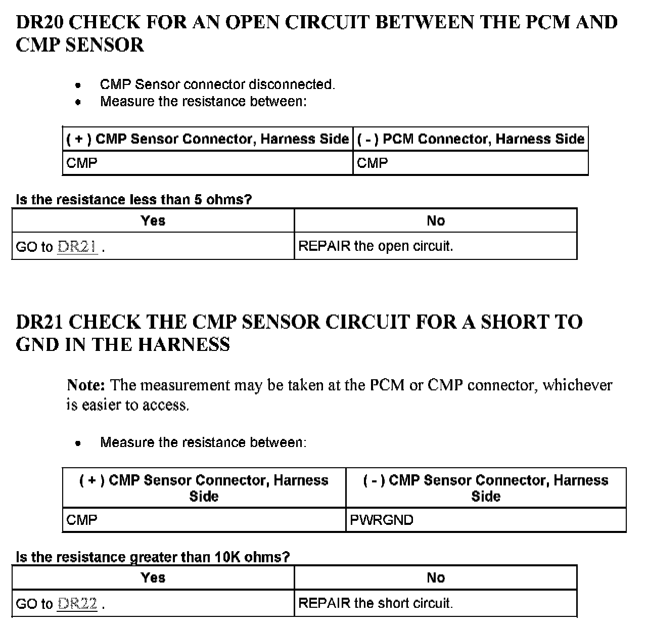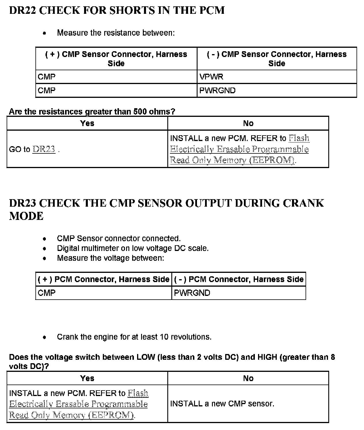 PINPOINT TEST DR: CAMSHAFT POSITION (CMP) SENSOR