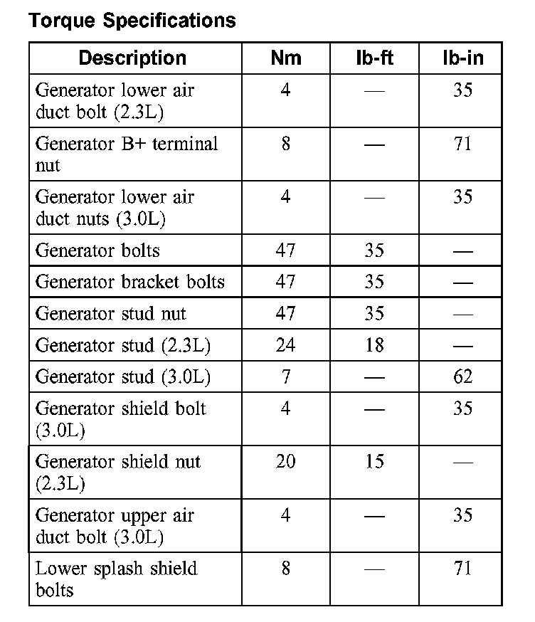 Torque Specifications: