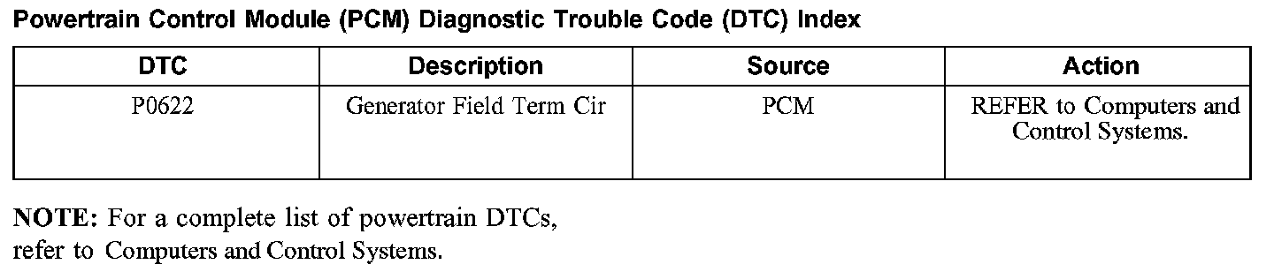 Powertrain Control Module (PCM) Diagnostic Trouble Code (DTC) Index