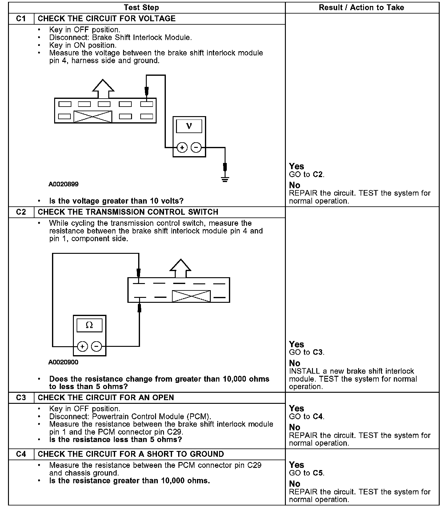 Test C: Transmission Control (TC) Switch Does Not Operate Correctly
