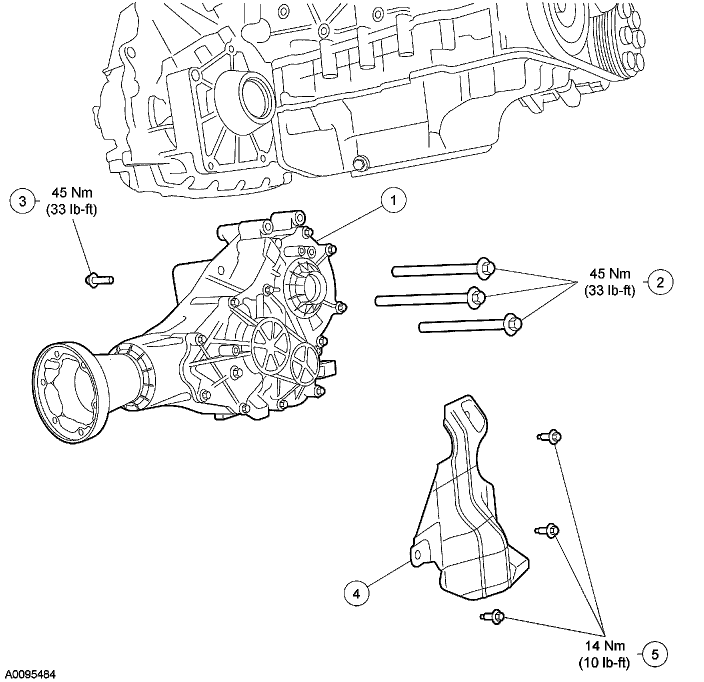 2. Install the 4 transfer case-to-transaxle bolts.