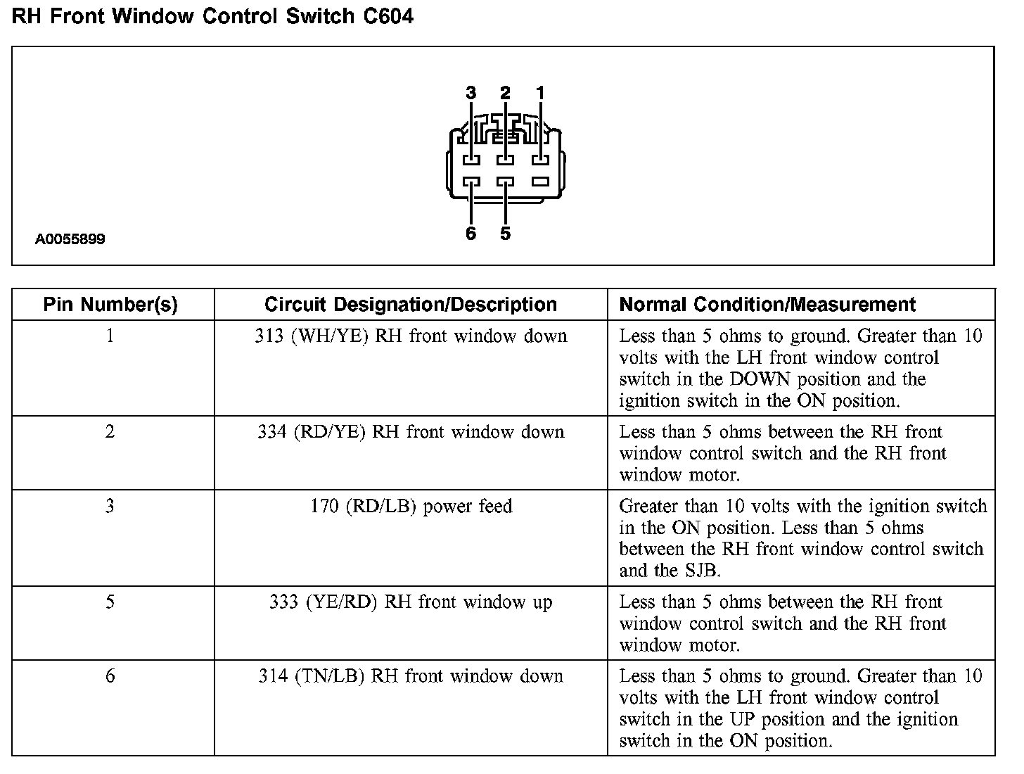 RH Front Window Control Switch C604: