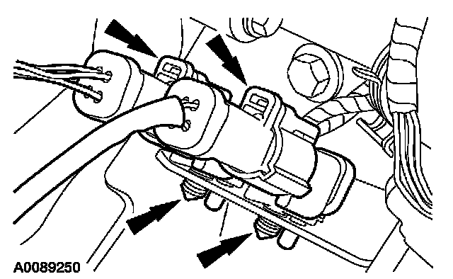 11. Attach the pin-type retainers to the transaxle support bracket and connect the heated oxygen sensor (HO2S) and catalyst monitor sensor electrical connectors.