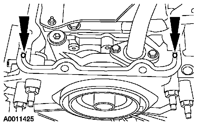 NOTE: The oil pan must be installed and the bolts tightened within four minutes of the sealant application.