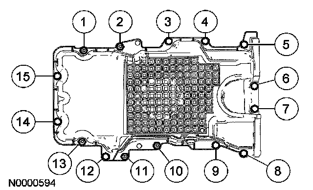 20. Tighten the oil pan bolts in the sequence shown to 25 Nm (18 ft. lbs.).