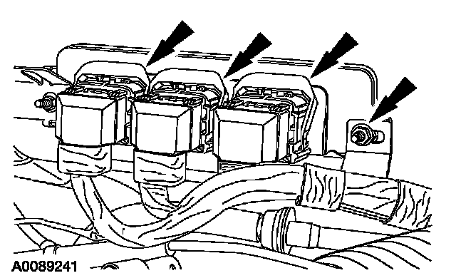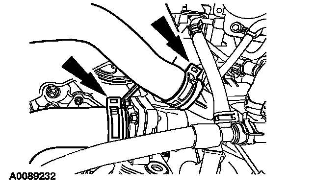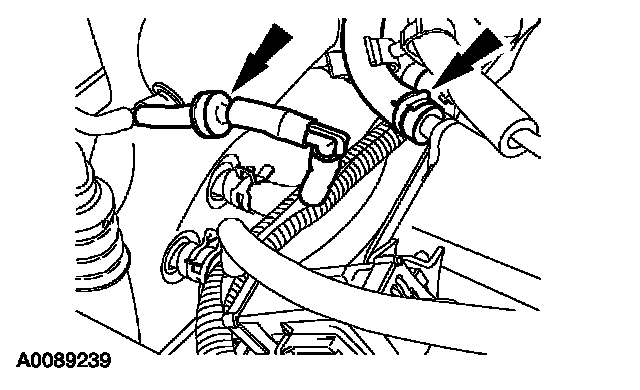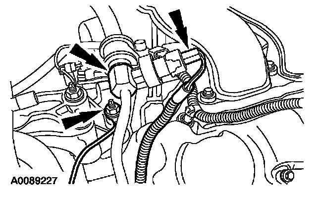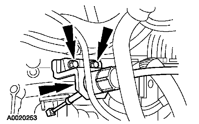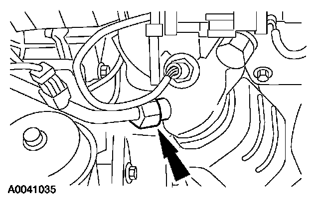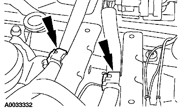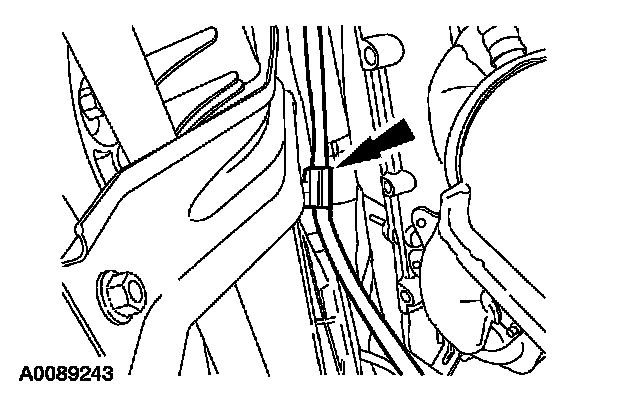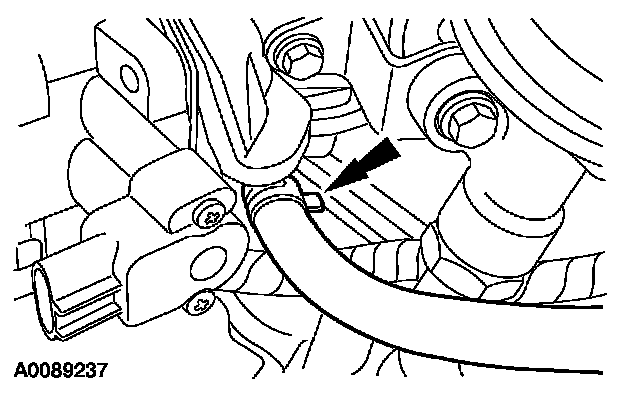^ Attach the vacuum tube retainer to the transmission fill tube.