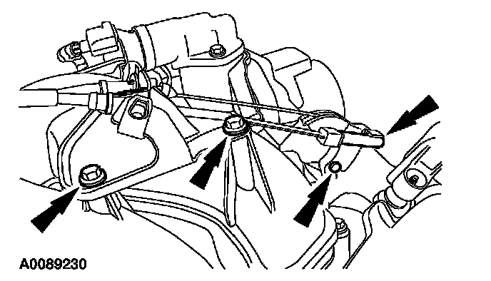 37. Position the gearshift cable bracket and install the bolts.