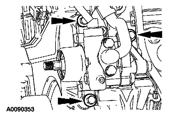 Apply a 10-mm (0.39 inch) dot of silicone gasket and sealant to the front cover-to-cylinder block sealing surface.