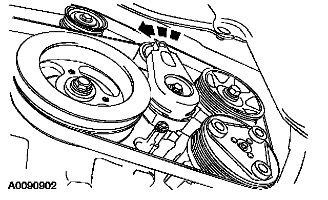 53. Rotate the accessory drive belt tensioner clockwise and install the accessory drive belt.