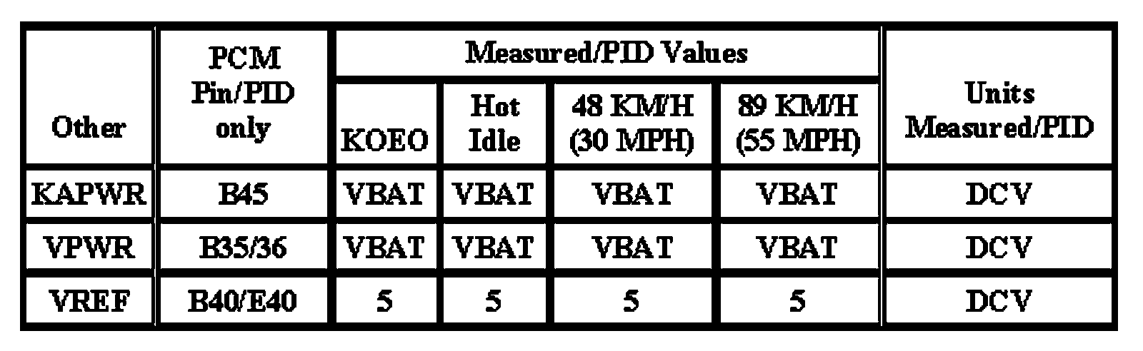 Note: All generic OBD readings under no load (PARK or NEUTRAL),