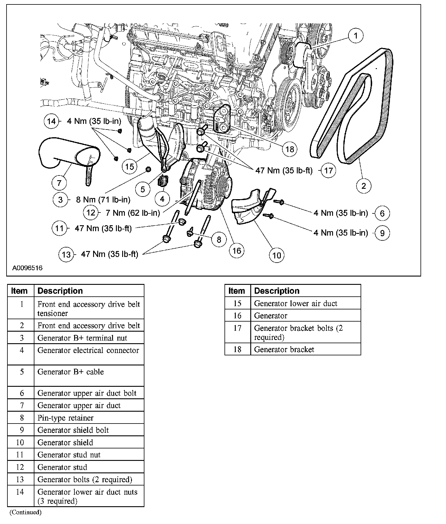 16. Position the generator aside and remove the 3 generator lower air duct nuts.