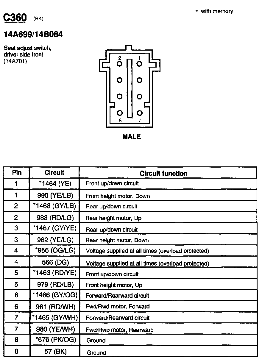 Seat Adjust Switch, Driver Side Front