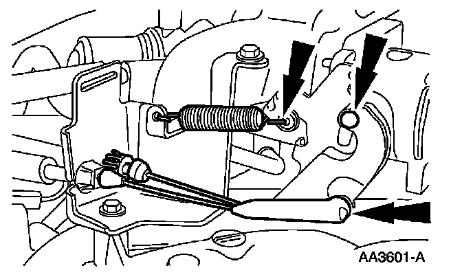 15. Connect the accelerator and speed control cables and the return spring.