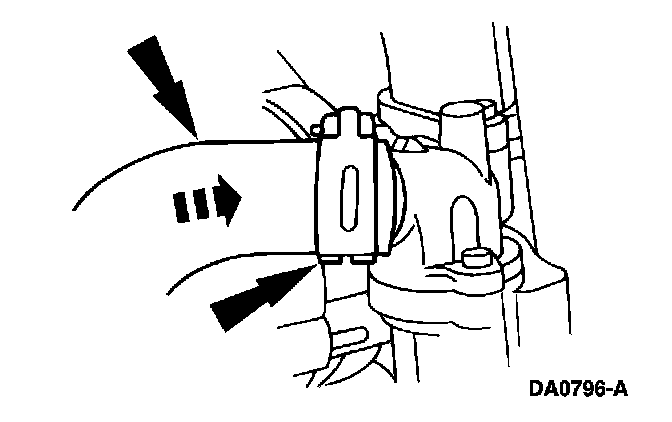 17. Connect the engine coolant outlet hose and position the hose clamp.