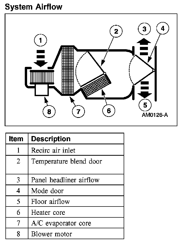 - All airflow from the blower motor passes through the evaporator core before reaching the heater core.