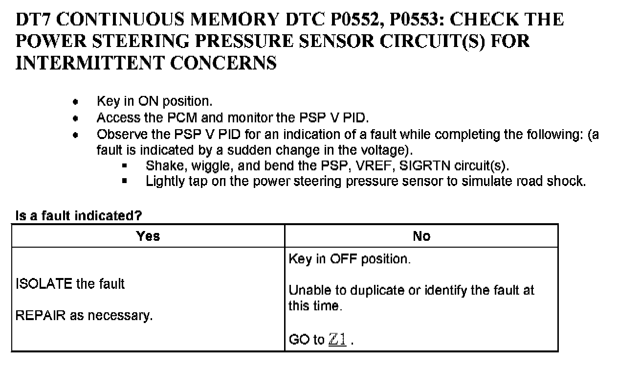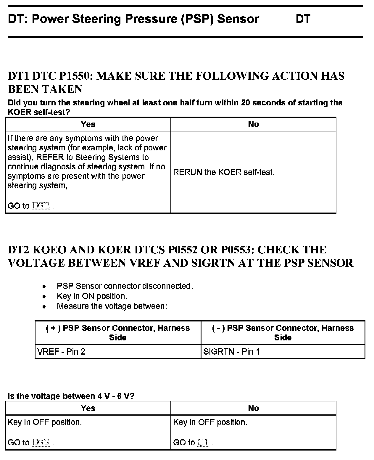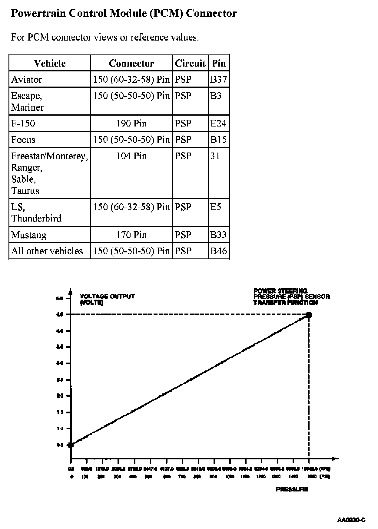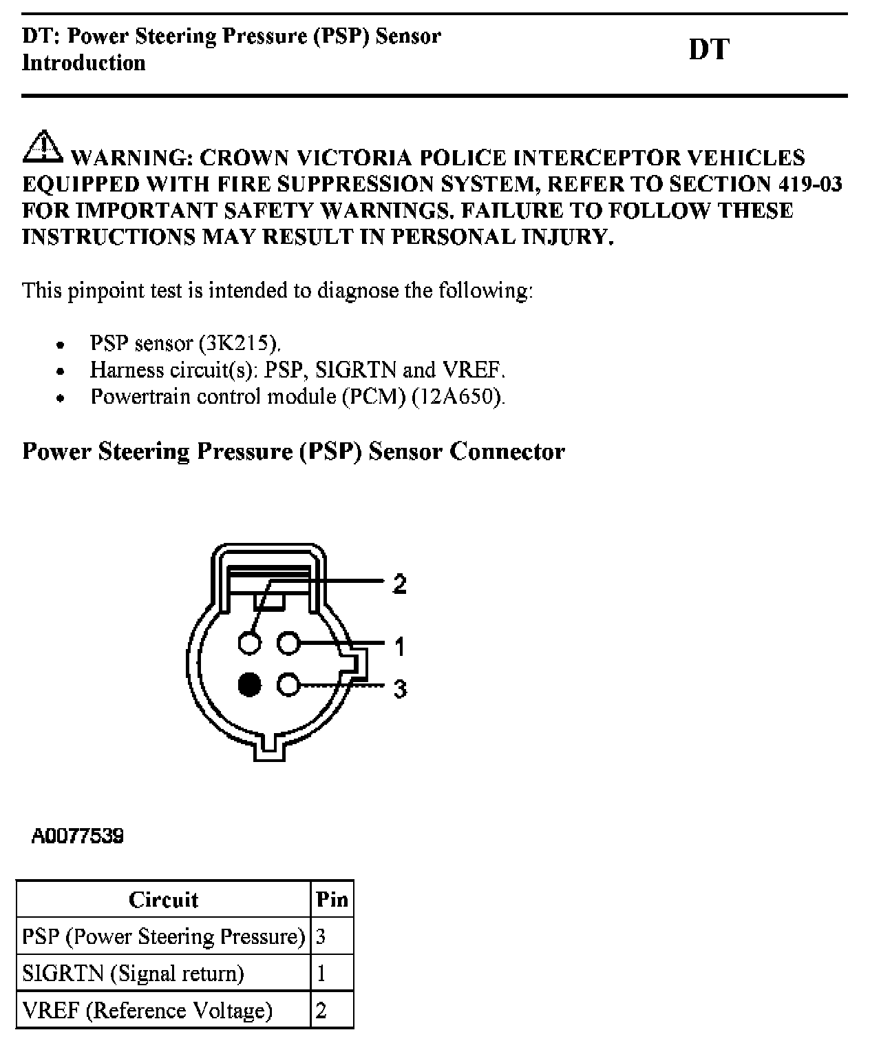 PINPOINT TEST DT: POWER STEERING PRESSURE (PSP) SENSOR