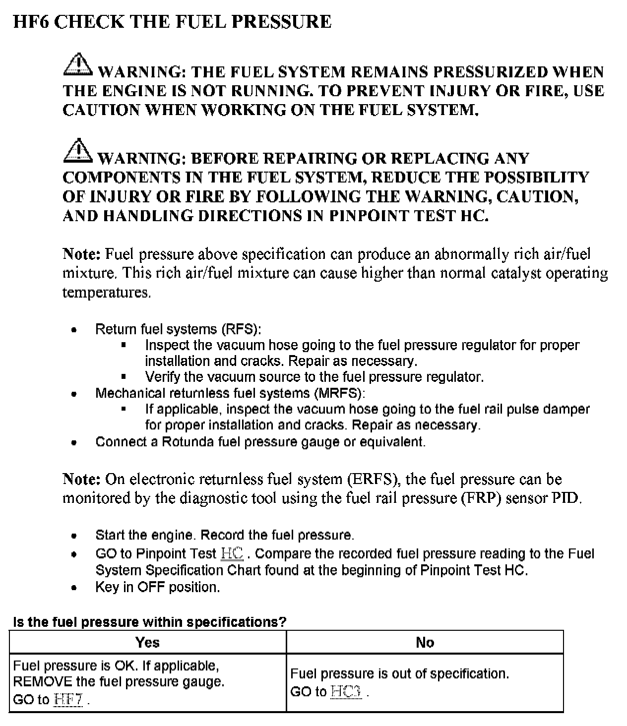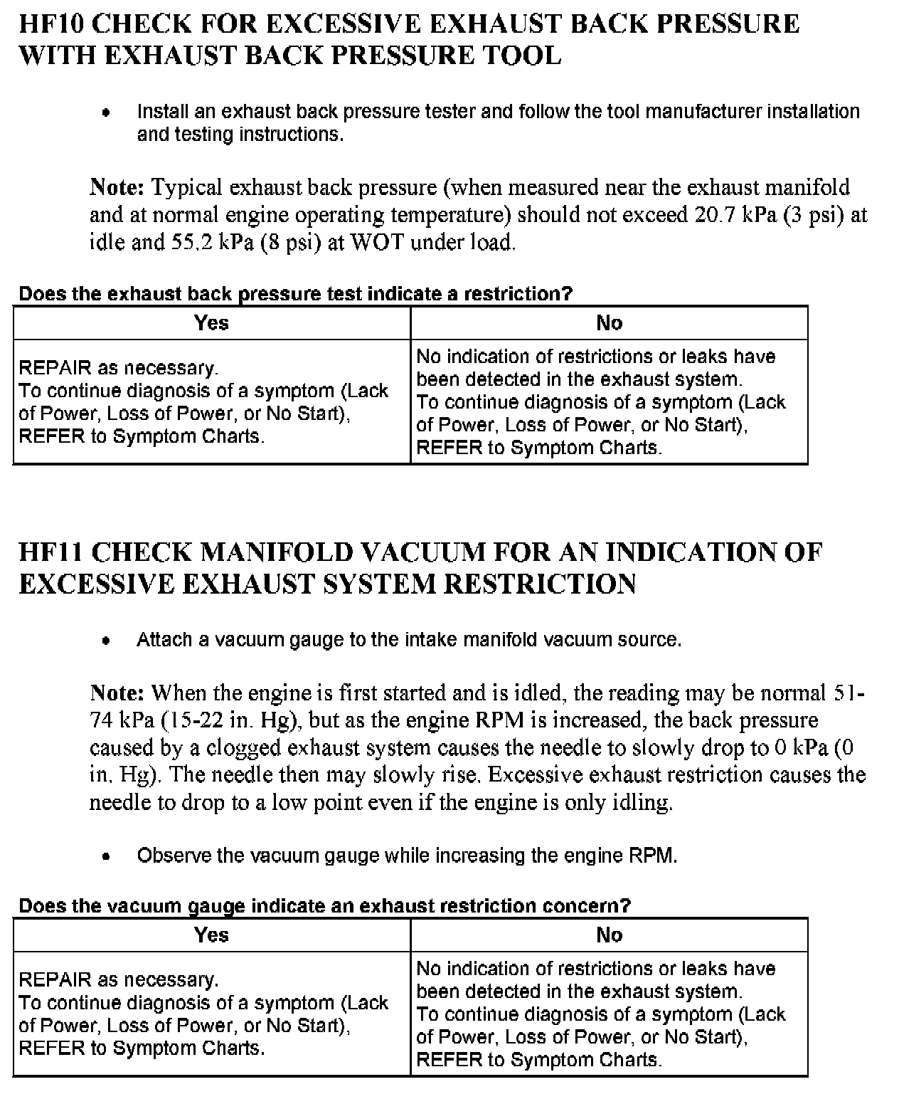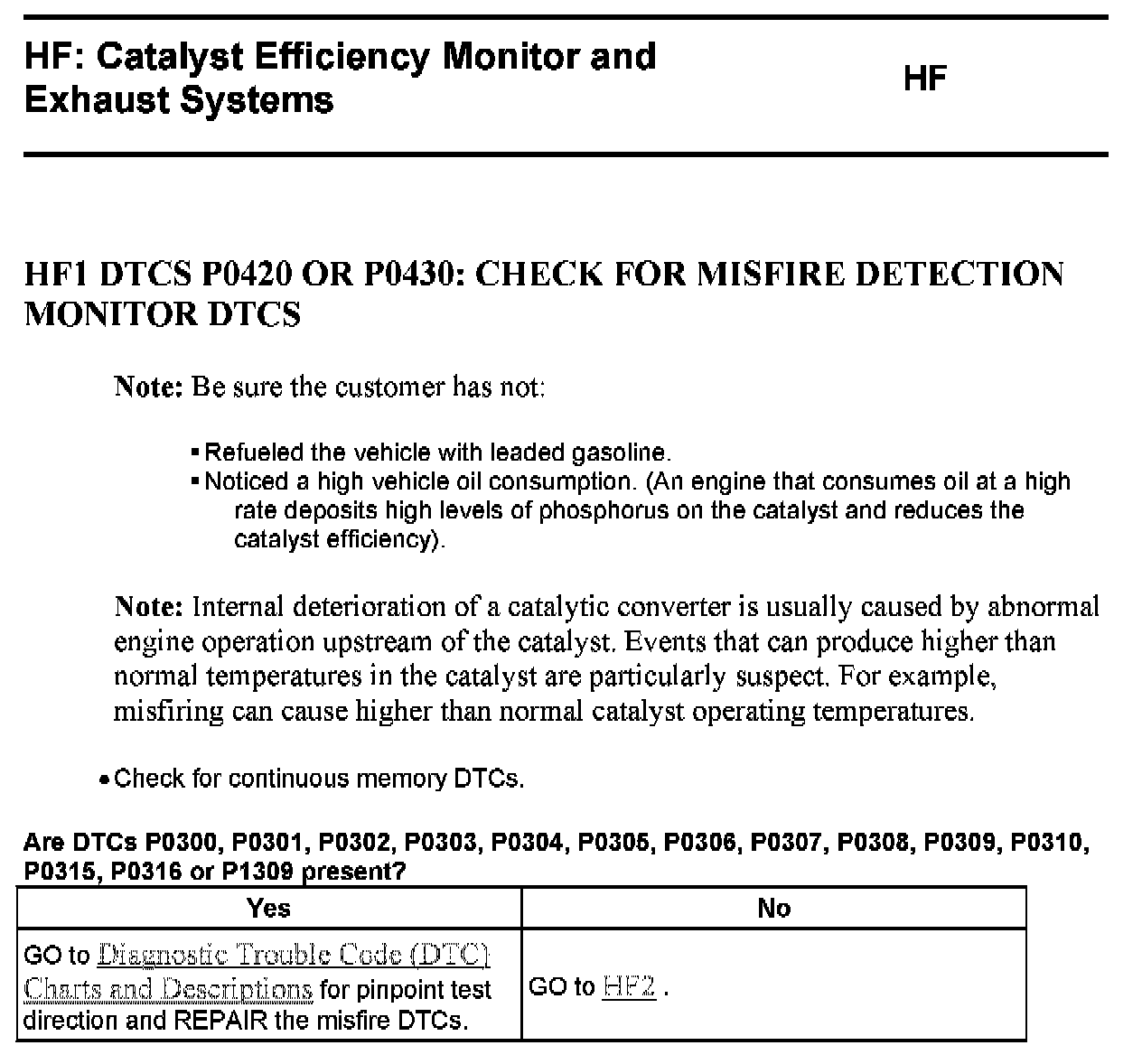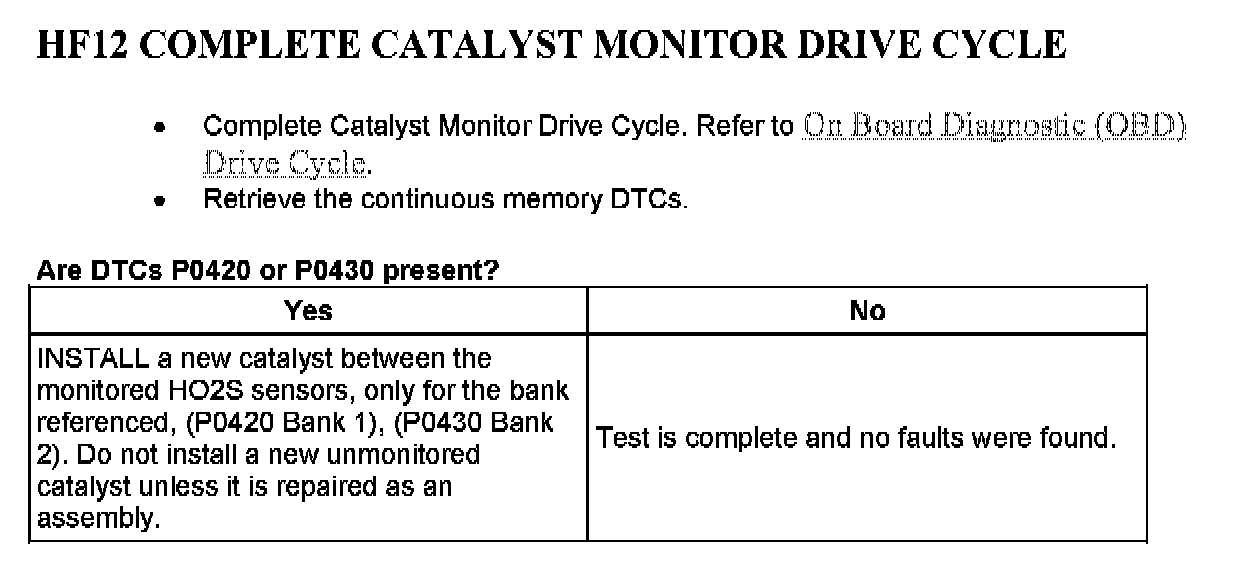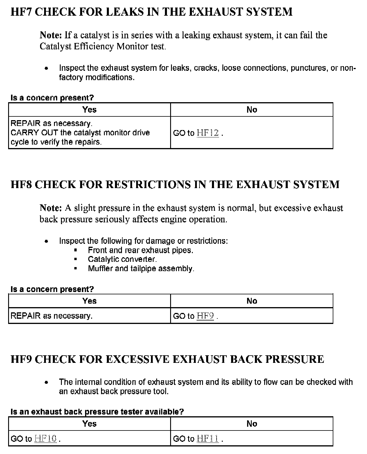 Tests HF: Catalyst Efficiency Monitor and Exhaust Systems